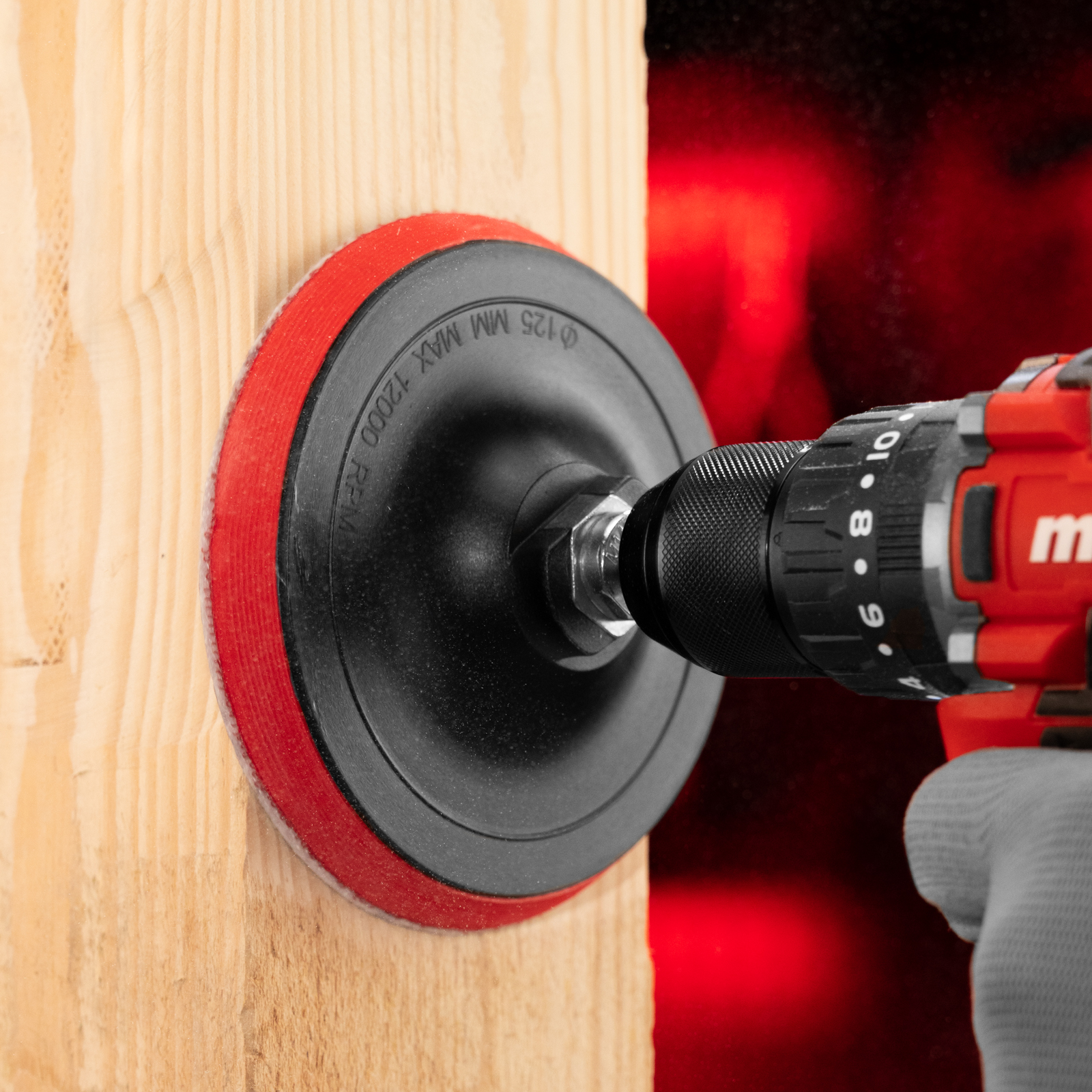 Насадка для дрели и УШМ с липучкой Matrix 76220 используется с дрелями и углошлифовальными машинами, поддерживающими оснастки диаметром 125 мм и имеющими рабочий диапазон вращения до 12000 об/мин. Предназначена для установки абразивных и полировальных кругов на ворсовой подложке. Насадка с демпферной вставкой из вспененного этиленвинилацетата (EVA) универсальна и подходит для всех видов полировальных и шлифовальных работ.