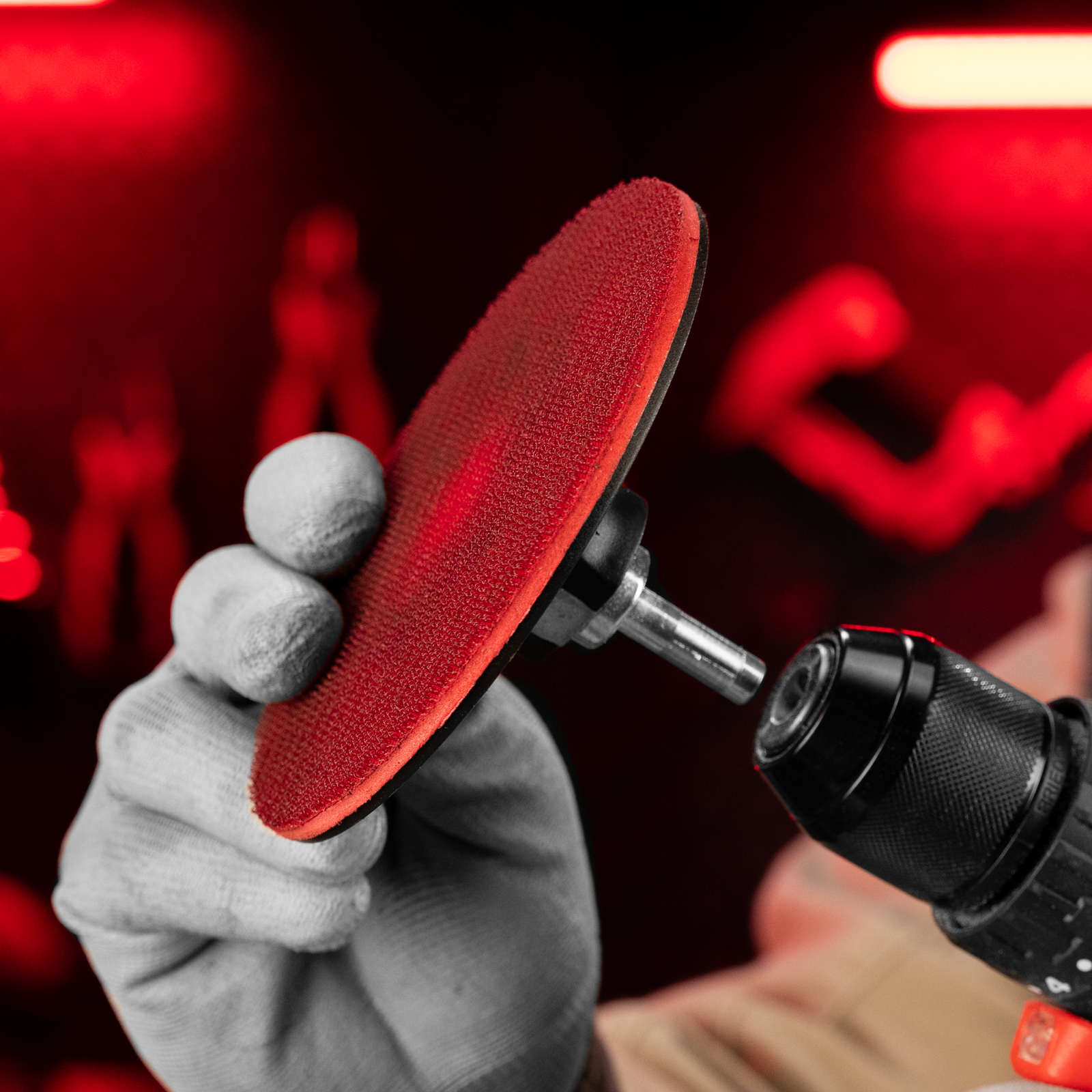 - Надежная фиксация и быстрая замена круга под «липучку» — нейлоновая рабочая поверхность оснащена крючками velcro.