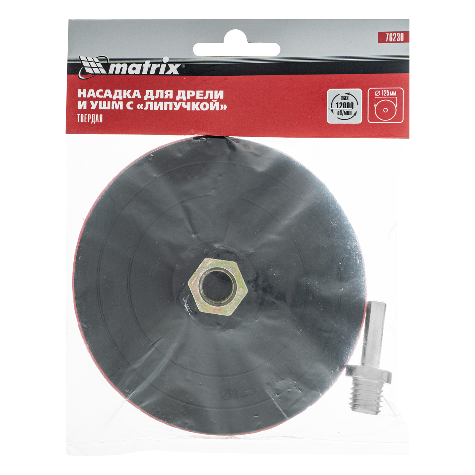 Твердая насадка для дрели и УШМ Matrix 76230 диаметром 125 мм, с «липучкой», используется совместно с углошлифовальными машинами и дрелями, работающими с частотой вращения до 12000 об/мин. Применяется для шлифовки и полировки металла, древесины и пластика. На опорную тарелку крепится абразивный или полировальный круг с системой фиксации velcro. Насадка изготовлена из прочного полипропилена и обеспечивает высокую производительность во время черновой обработки.