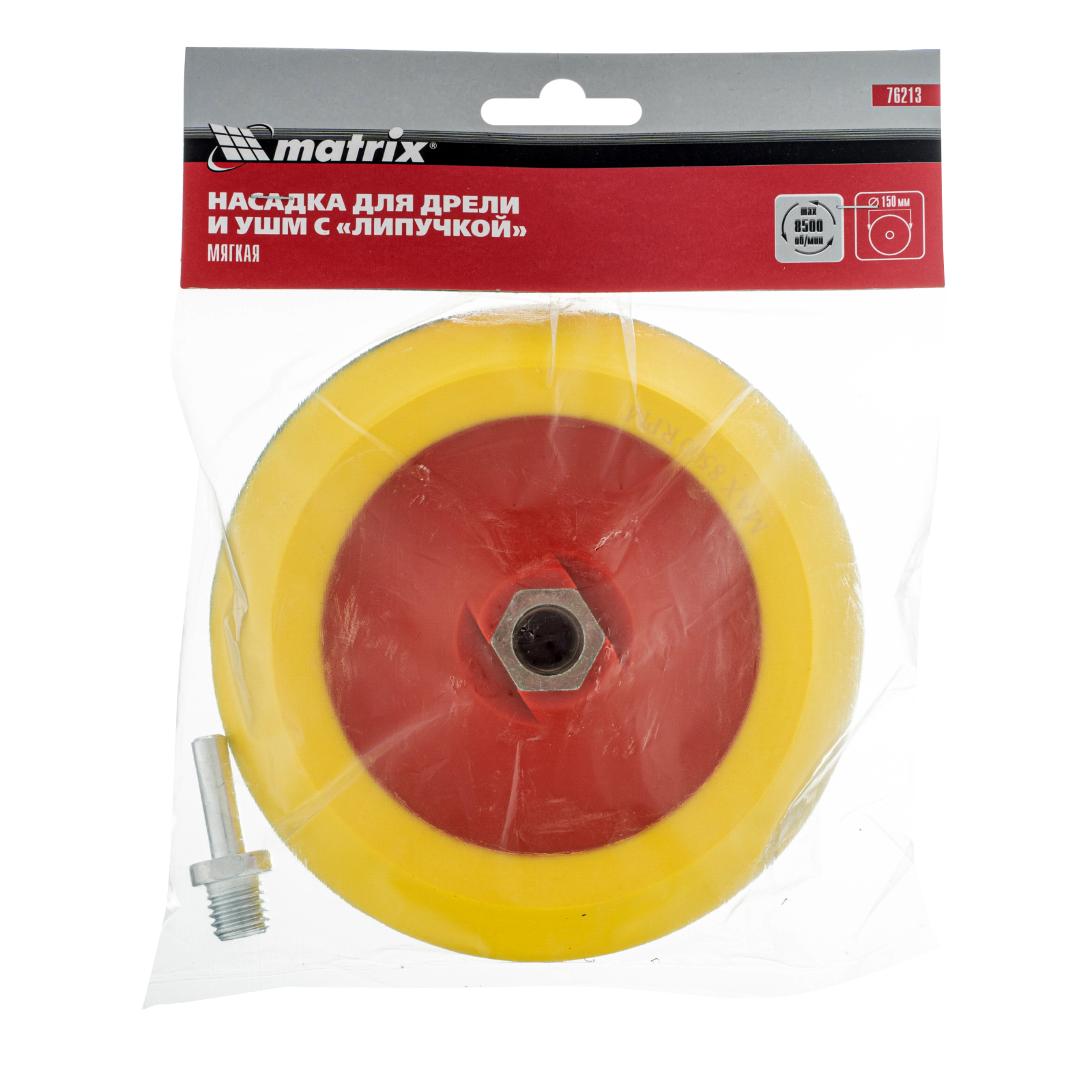 Мягкая насадка для дрели и УШМ с «липучкой» Matrix 76213 диаметром 150 мм устанавливается на дрель или болгарку с максимальной частотой вращения 8500 об/мин. Предназначена для фиксации полировальных и абразивных кругов с креплением под «липучку». Благодаря демпферной вставке из мягкого полиуретана круг плотно прилегает к обрабатываемой поверхности. Насадка используется для проведения шлифовальных и полировальных работ.
