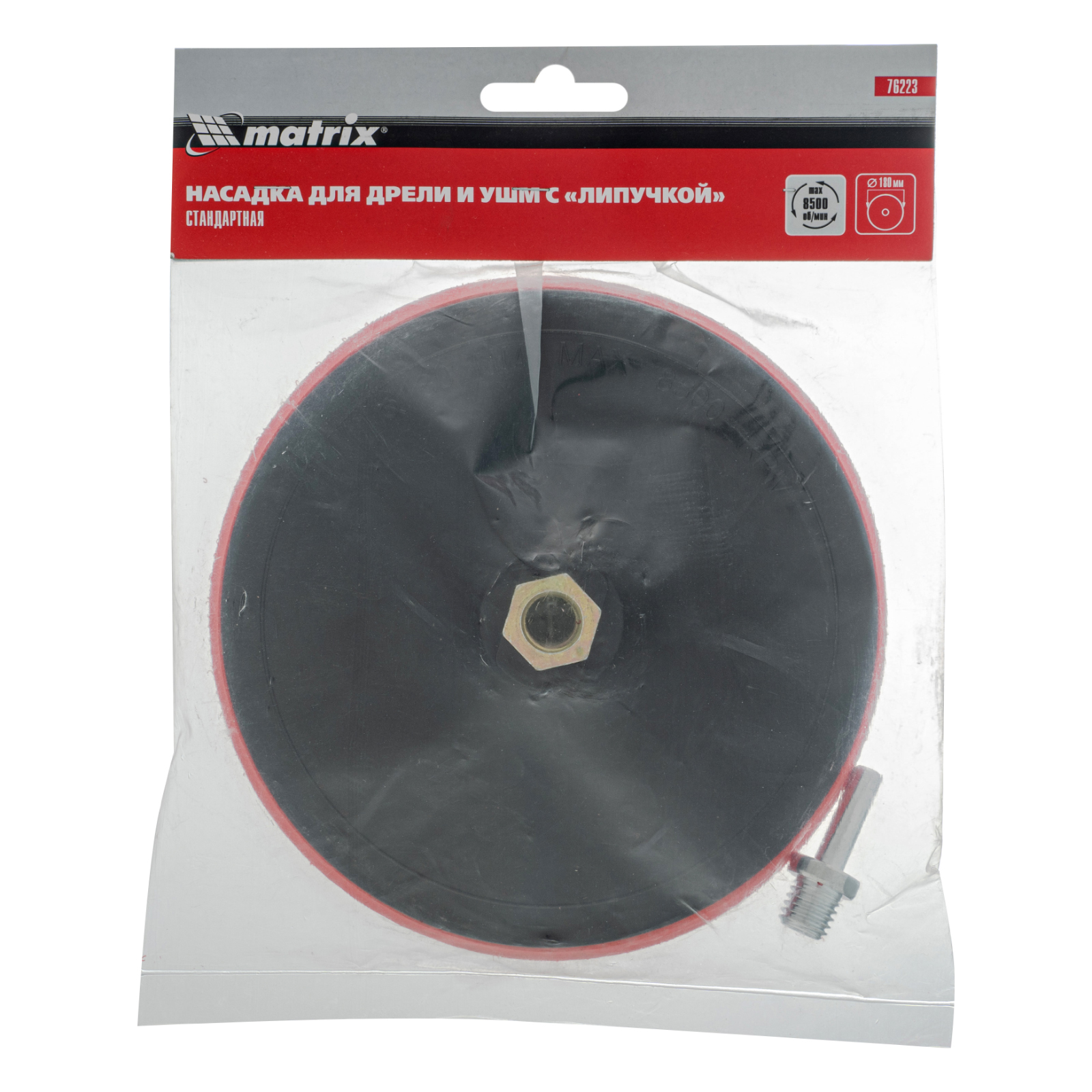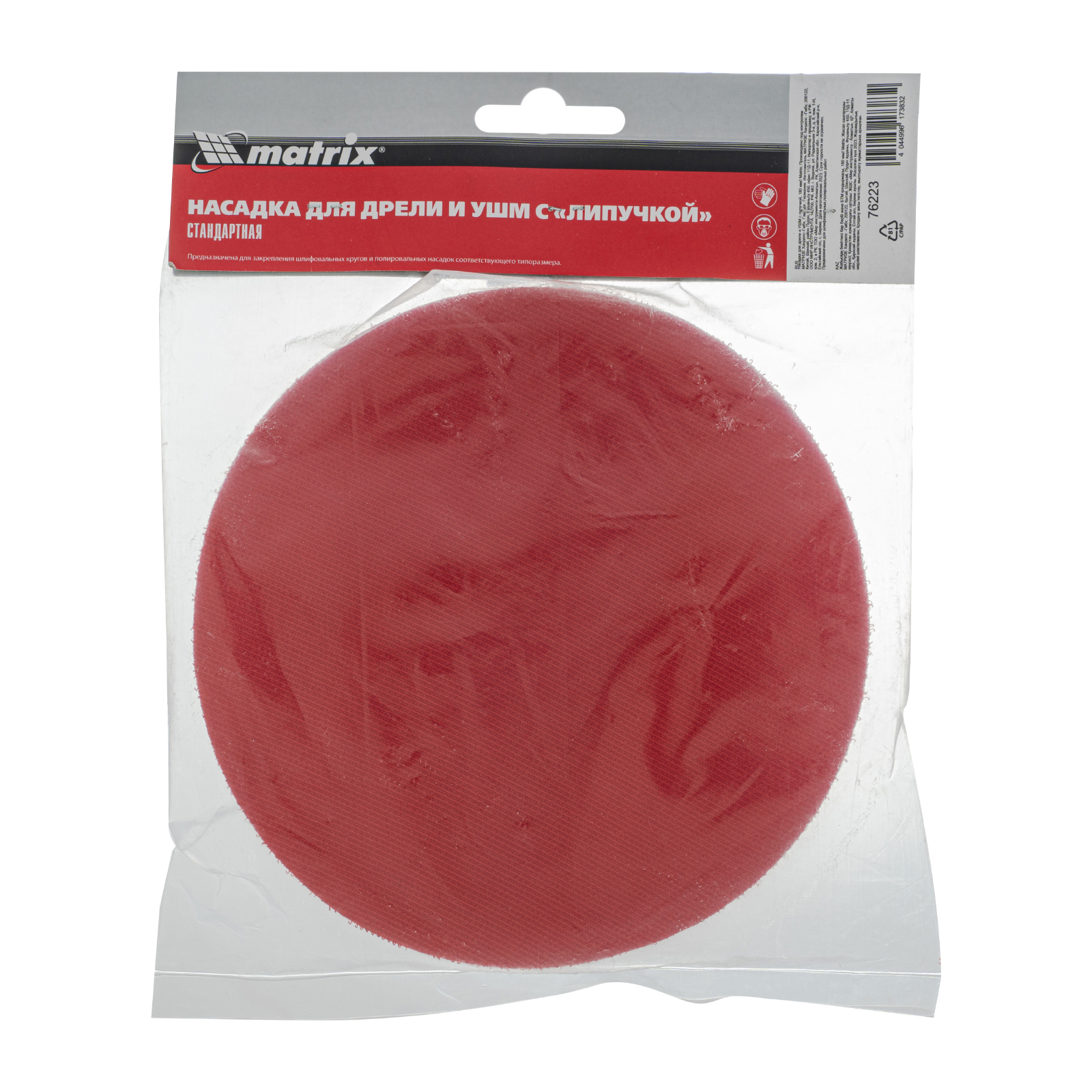 Насадка для дрели и УШМ с липучкой Matrix 76223 используется с дрелями и углошлифовальными машинами, поддерживающими оснастки диаметром 180 мм и имеющими рабочий диапазон вращения до 8500 об/мин. Предназначена для установки абразивных и полировальных кругов на ворсовой подложке. Насадка с демпферной вставкой из вспененного этиленвинилацетата (EVA) универсальна и подходит для всех видов полировальных и шлифовальных работ.