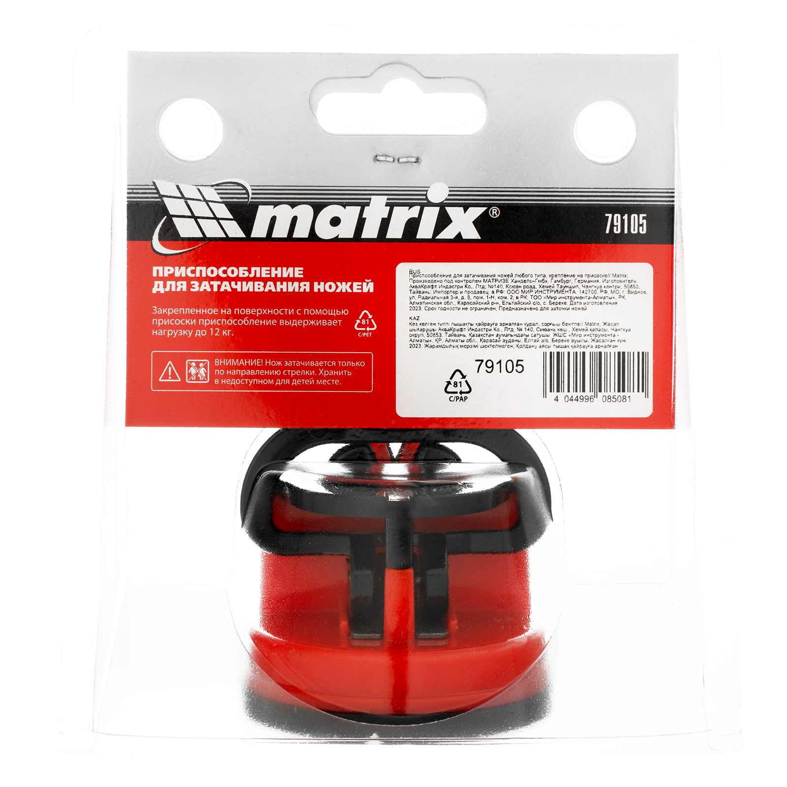 Приспособление для затачивания Matrix 79105 с креплением на присоске поможет быстро восстановить остроту ножей любого типа. В верхней части корпуса имеется направляющий паз, позволяющий выдержать нужный угол заточки. Ножеточка пригодится в домашнем хозяйстве.