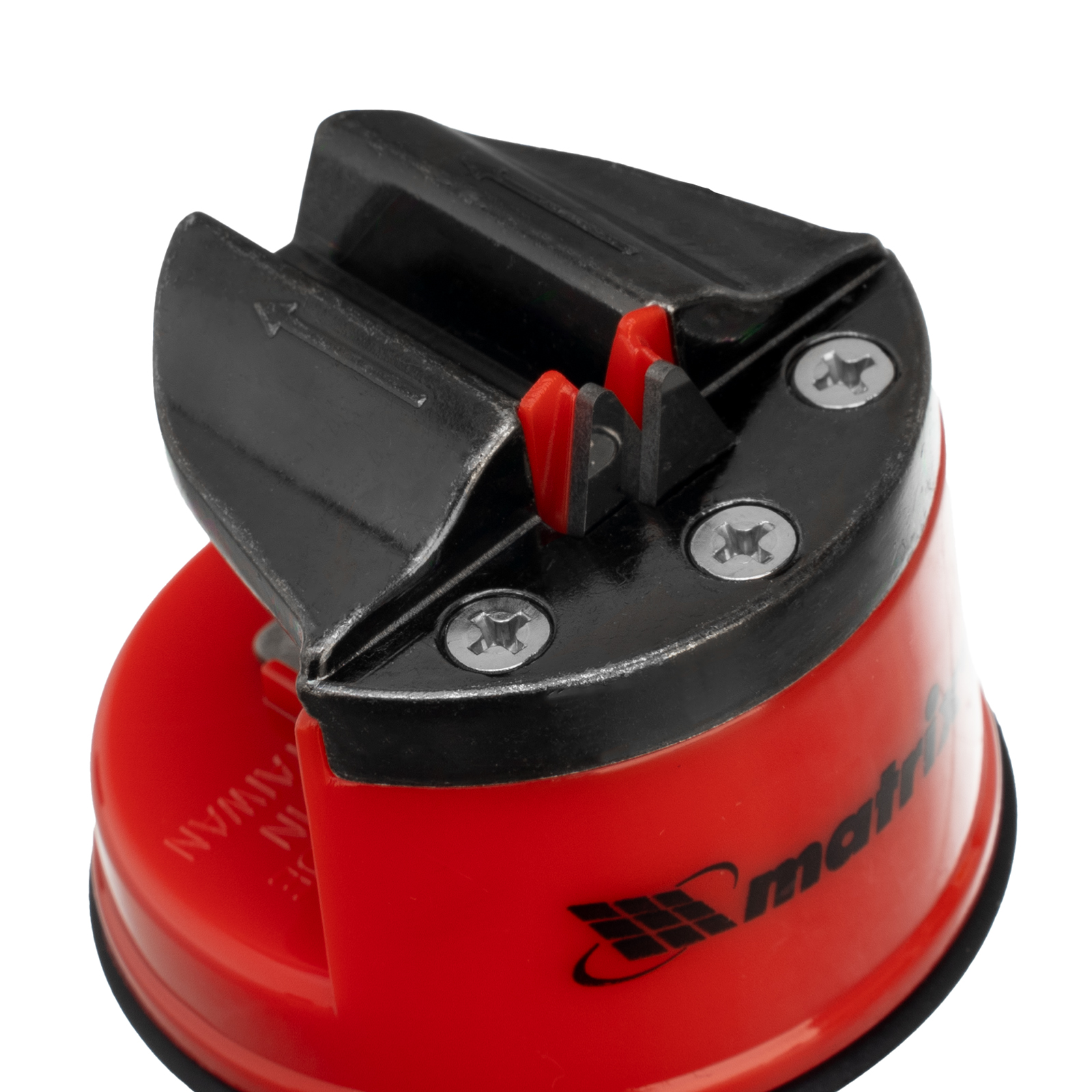 Приспособление для затачивания ножей любого типа Matrix 79104 с металлической направляющей и креплением на присоске быстро возвращает остроту затупившимся лезвиям ножей и садовых инструментов. Ножеточка будет полезна в быту — она не требует особых навыков, поэтому с ней справится каждая хозяйка.