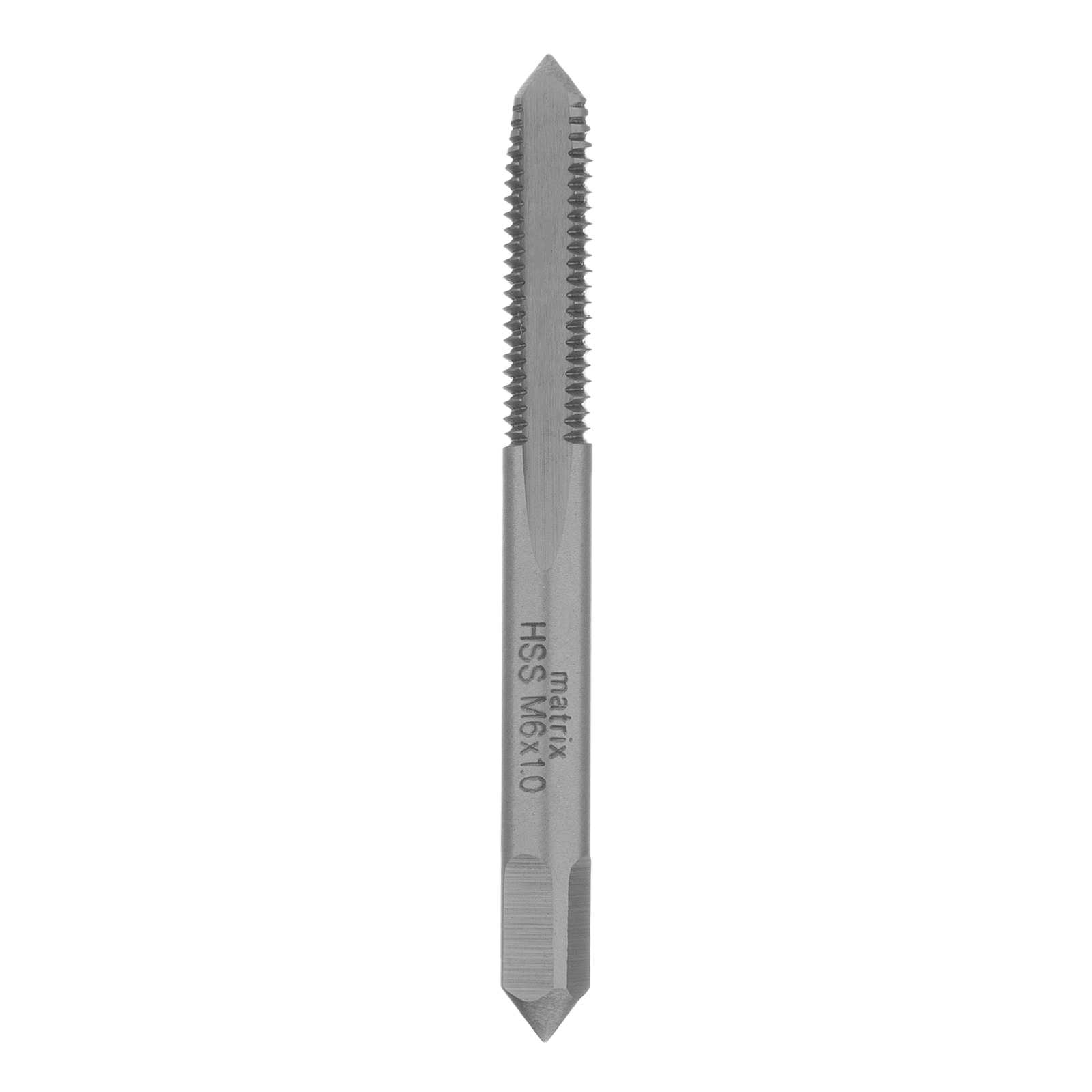 Ручной метчик Matrix 76675, HSS, — резьбонарезной инструмент, который используется для создания резьбы диаметром М6 и шагом 1,0 мм. Оптимален для работы с деталями из твердой стали прочностью до 900 Н/мм². Нарезает резьбу за один проход. Метчик устанавливается на метчикодержатель с патроном под хвостовик 5 мм. Будет полезен в слесарной мастерской, а также дома или в гараже.
