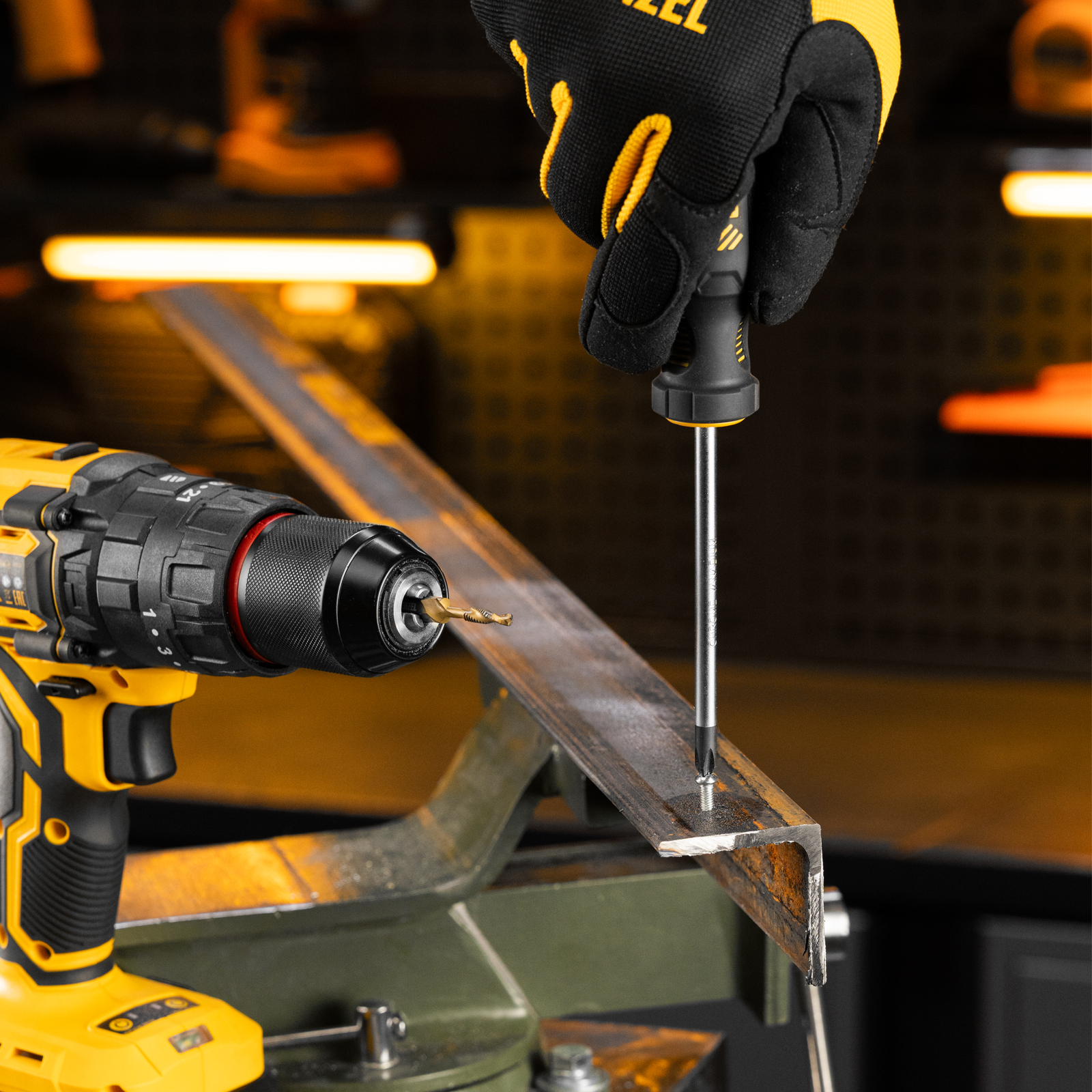 - Долговечность — нитридтитановое покрытие защищает от повреждений и уменьшает трение, что увеличивает устойчивость сверла-метчика к износу.