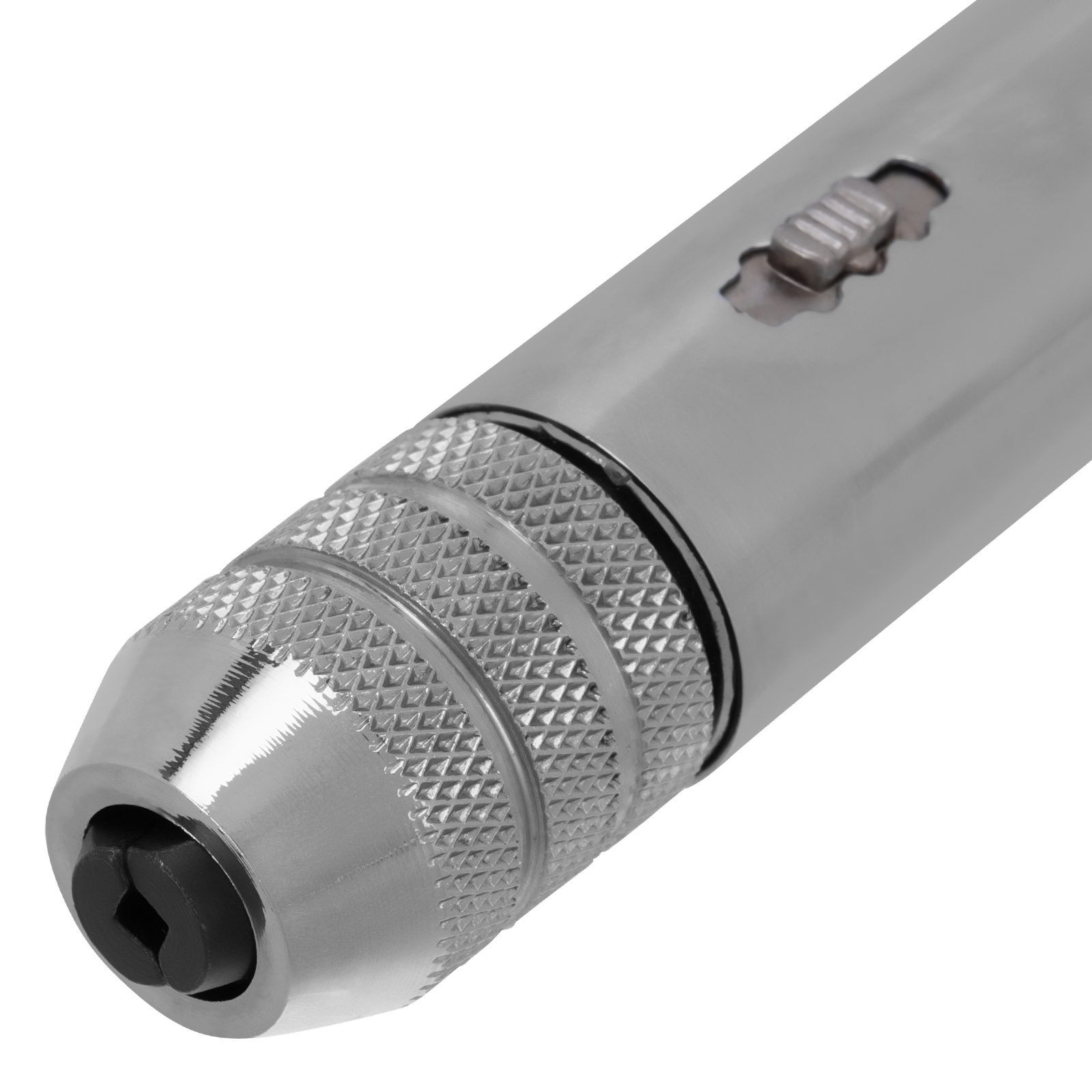- Комфортная работа — наличие трещоточного механизма и функции реверса облегчает нарезание резьбы и извлечение метчика.