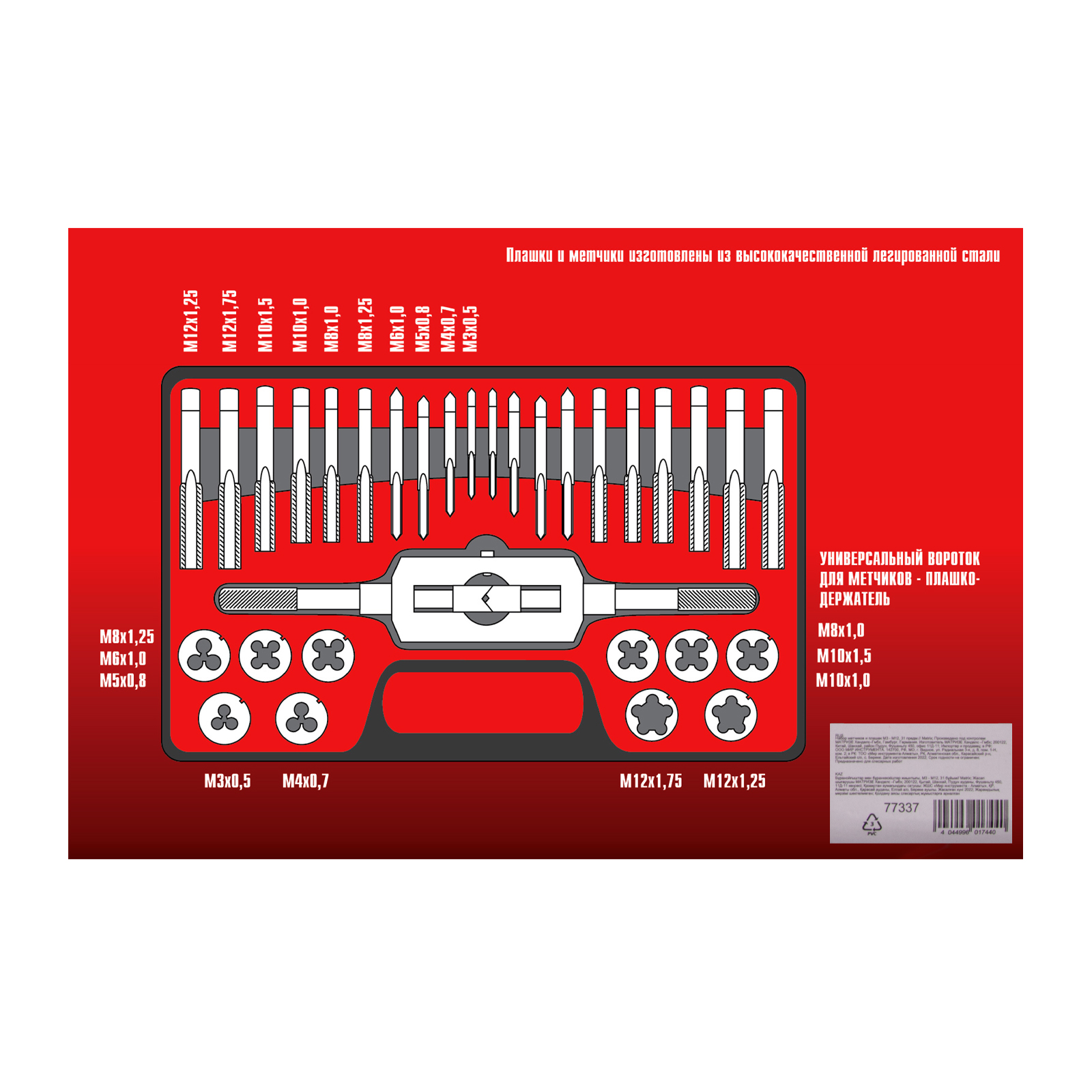 - Высокое качество внутренней резьбы — в комплекте имеются метчики первого и второго номеров для первичного прохода и финишной доводки.