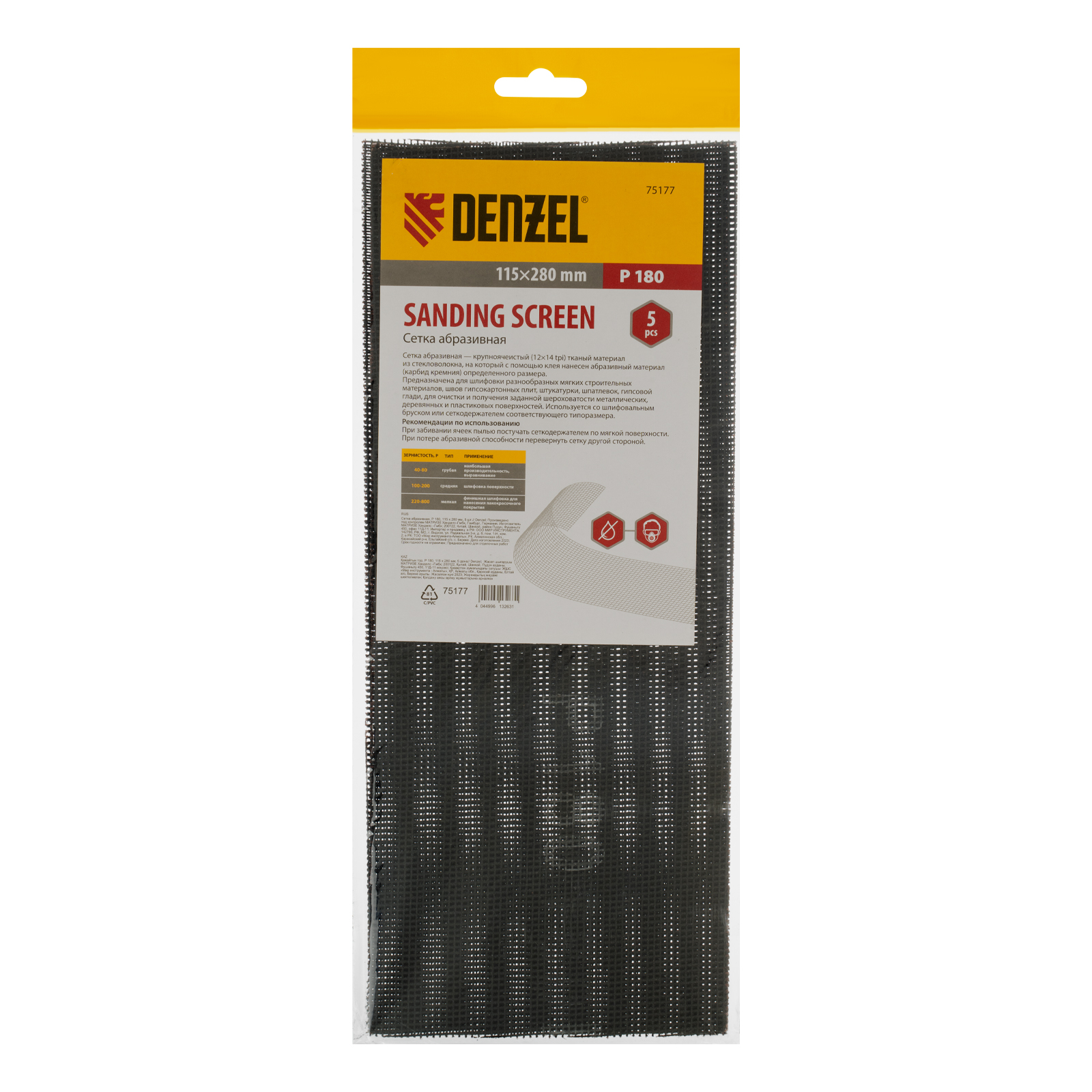 Абразивная сетка Denzel 75177 размером 115 х 280 мм, с зернистостью P 180, 5 шт. в упаковке, применяется для чистовой обработки и придания гладкости зашпаклеванным поверхностям, а также твердой древесине и металлу. Бережно снимает тонкий слой материала и лакокрасочного покрытия, удаляет ржавчину и заусенцы, сглаживает неровности. Обладает высоким ресурсом, т.к. заостренные зерна карбида кремния стачиваются медленно. Сетку устанавливают на ручное шлифовальное приспособление — брусок или сеткодержатель соответствующего типоразмера.
