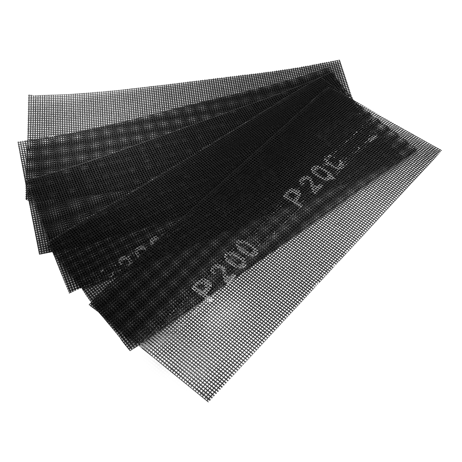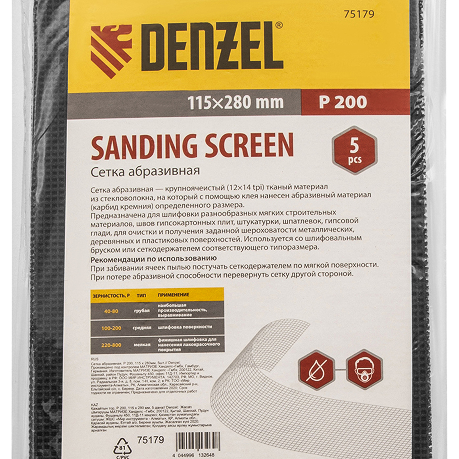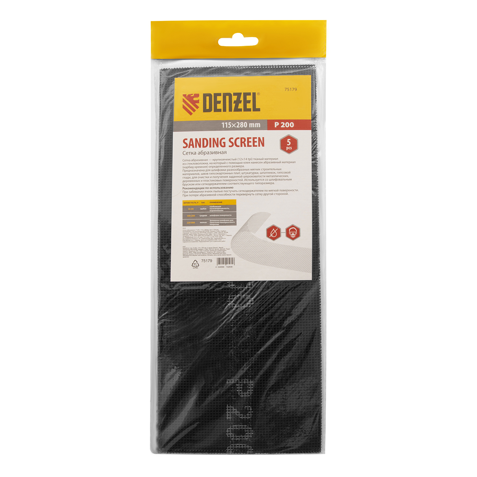 Абразивная сетка Denzel 75179 размером 115 х 280 мм, с зернистостью P 200, 5 шт. в упаковке, применяется для чистовой обработки и придания гладкости зашпаклеванным поверхностям, а также твердой древесине и металлу. Бережно снимает тонкий слой материала и лакокрасочного покрытия, удаляет ржавчину и заусенцы, сглаживает неровности. Обладает высоким ресурсом, т.к. заостренные зерна карбида кремния стачиваются медленно. Сетку устанавливают на ручное шлифовальное приспособление — брусок или сеткодержатель соответствующего типоразмера.