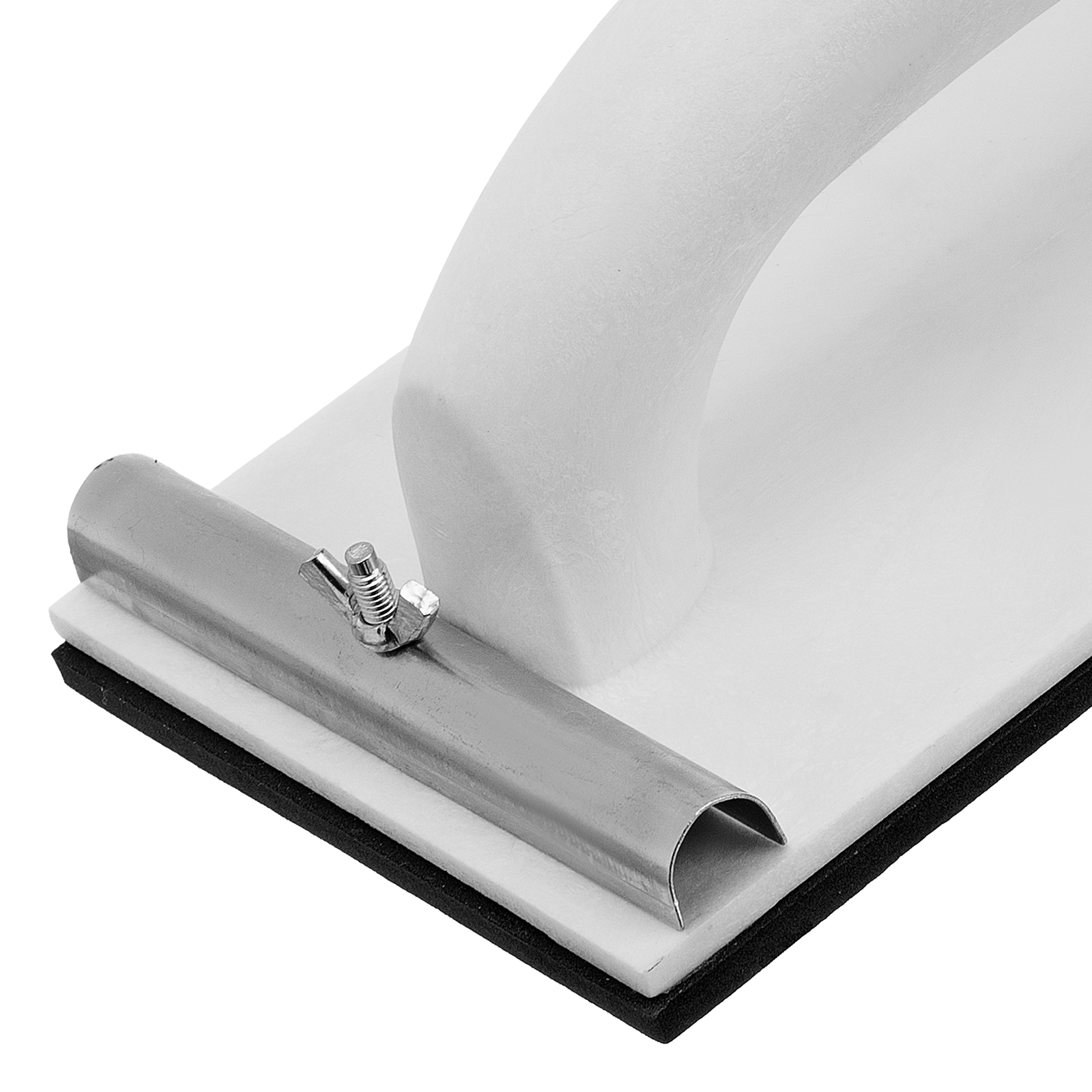 - Надежная фиксация абразивного материала — благодаря винтовым зажимам сетка или шлифлист не смещается во время работы.