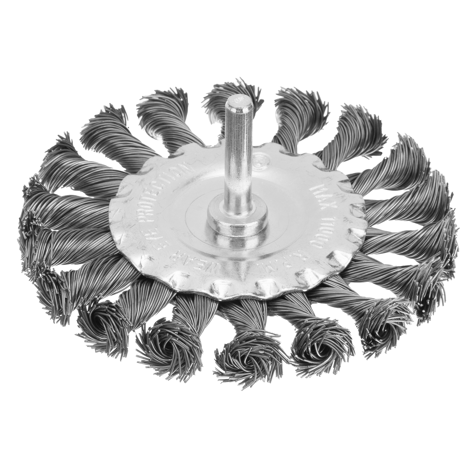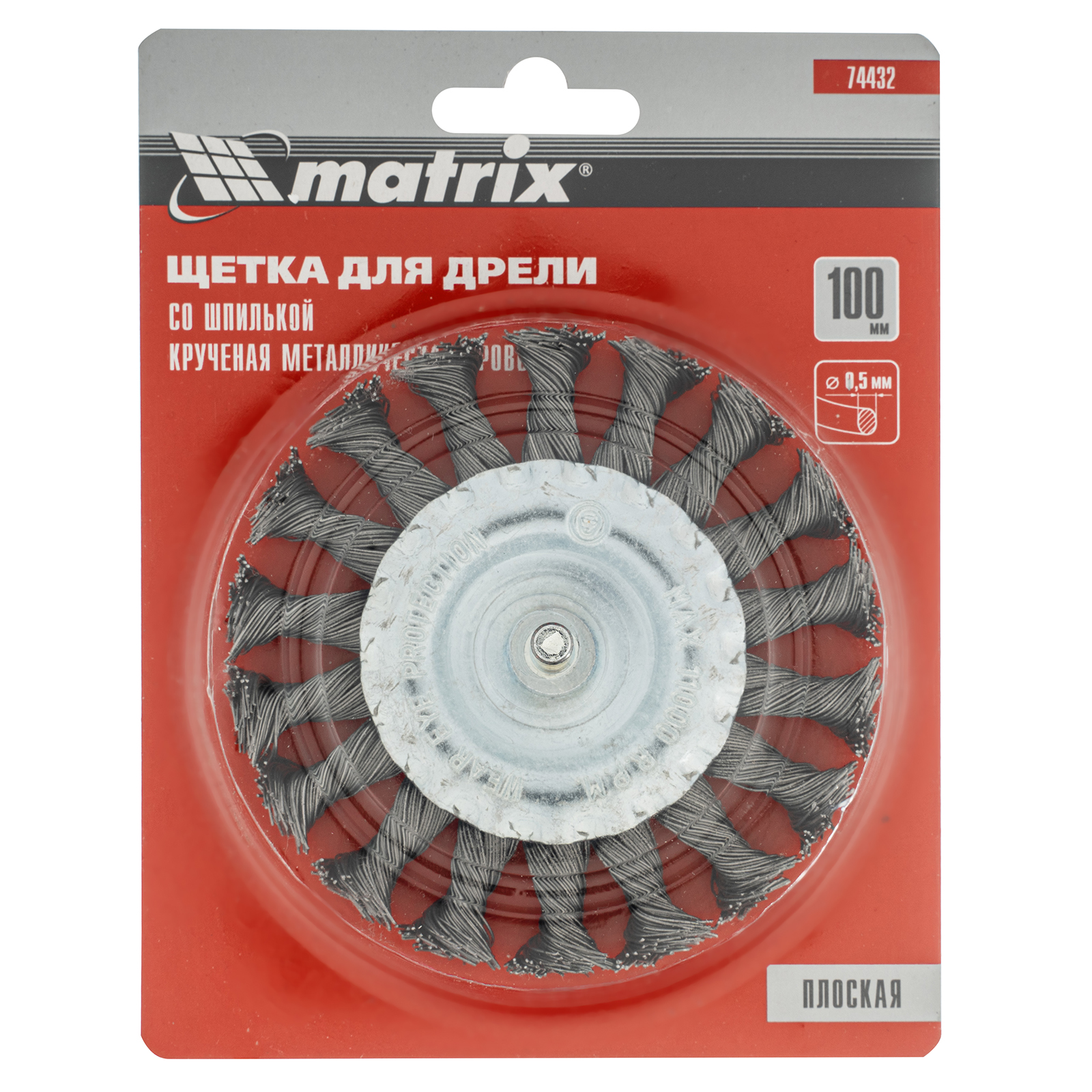 Плоская щетка со шпилькой для дрели Matrix 74432 диаметром 100 мм, с щетиной из крученой металлической проволоки, позволяет быстро очистить металлическую, деревянную или бетонную поверхность от загрязнений, ржавчины, старой краски или лака. Используется для обработки внутренних углов, пазов, изгибов, узких и труднодоступных мест. Подходит для очистки сварных швов. При помощи хвостовика диаметром 6 мм щетку устанавливают в патрон дрели или ПШМ с максимальной частотой вращения до 11000 об/мин. Насадка применяется в строительстве, машиностроении, пригодится также в быту. Во время работы со щеткой следует использовать средства индивидуальной защиты.
