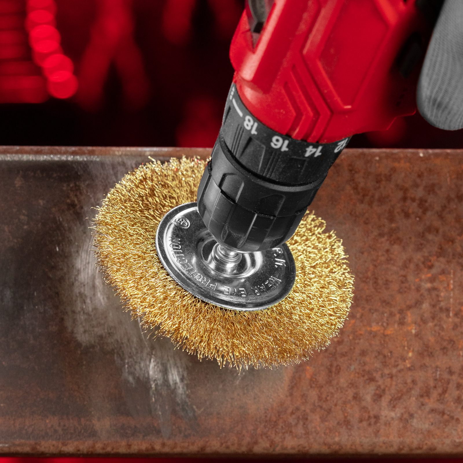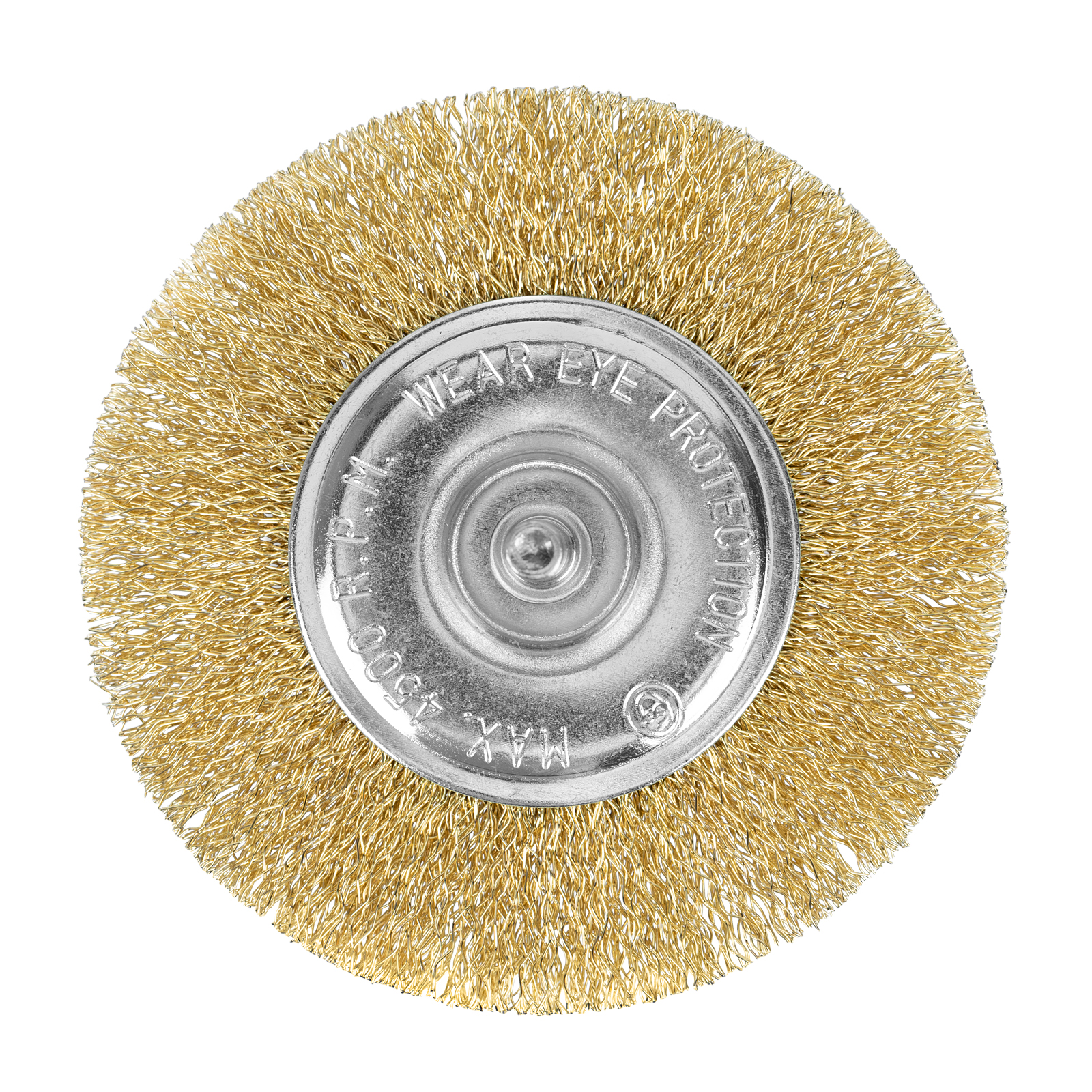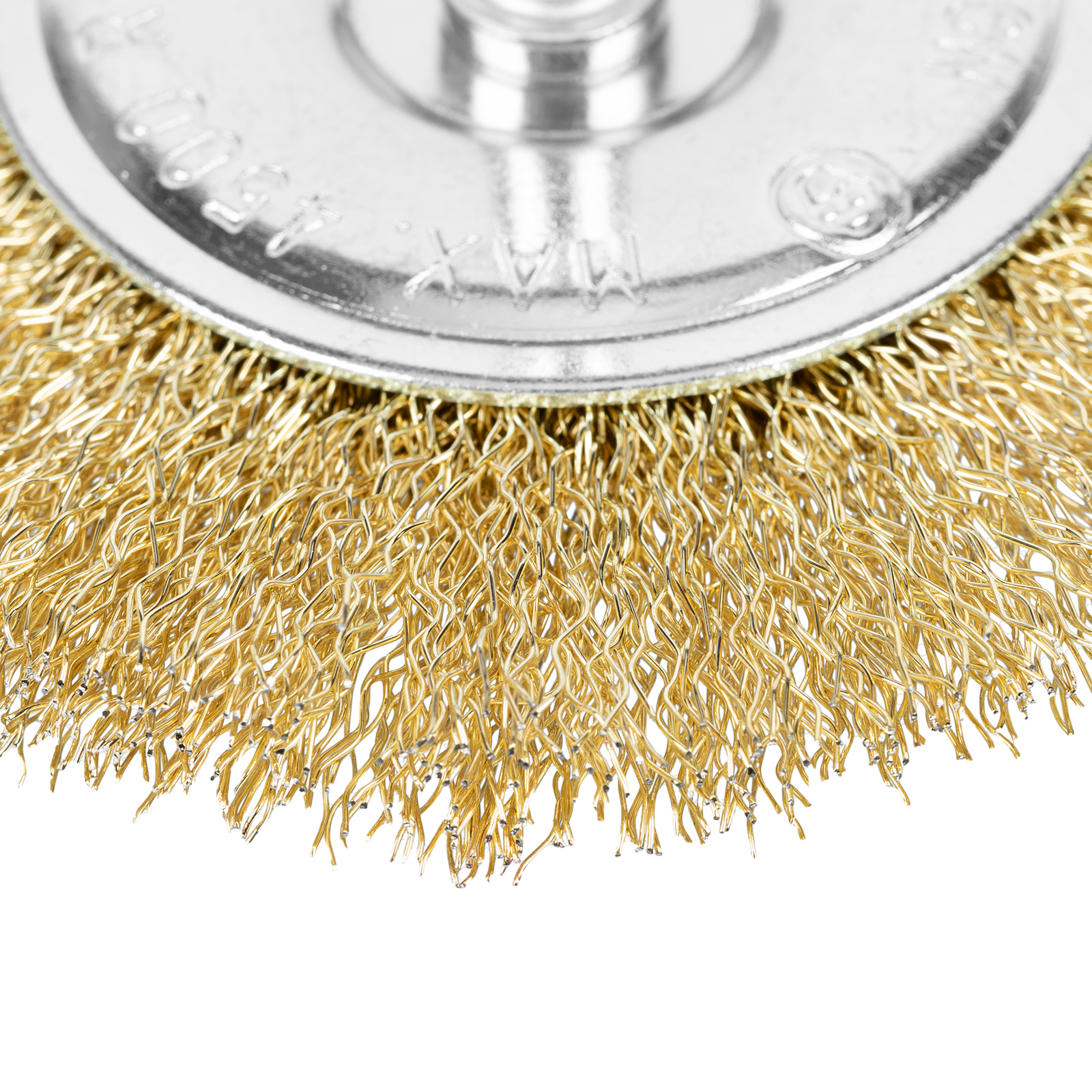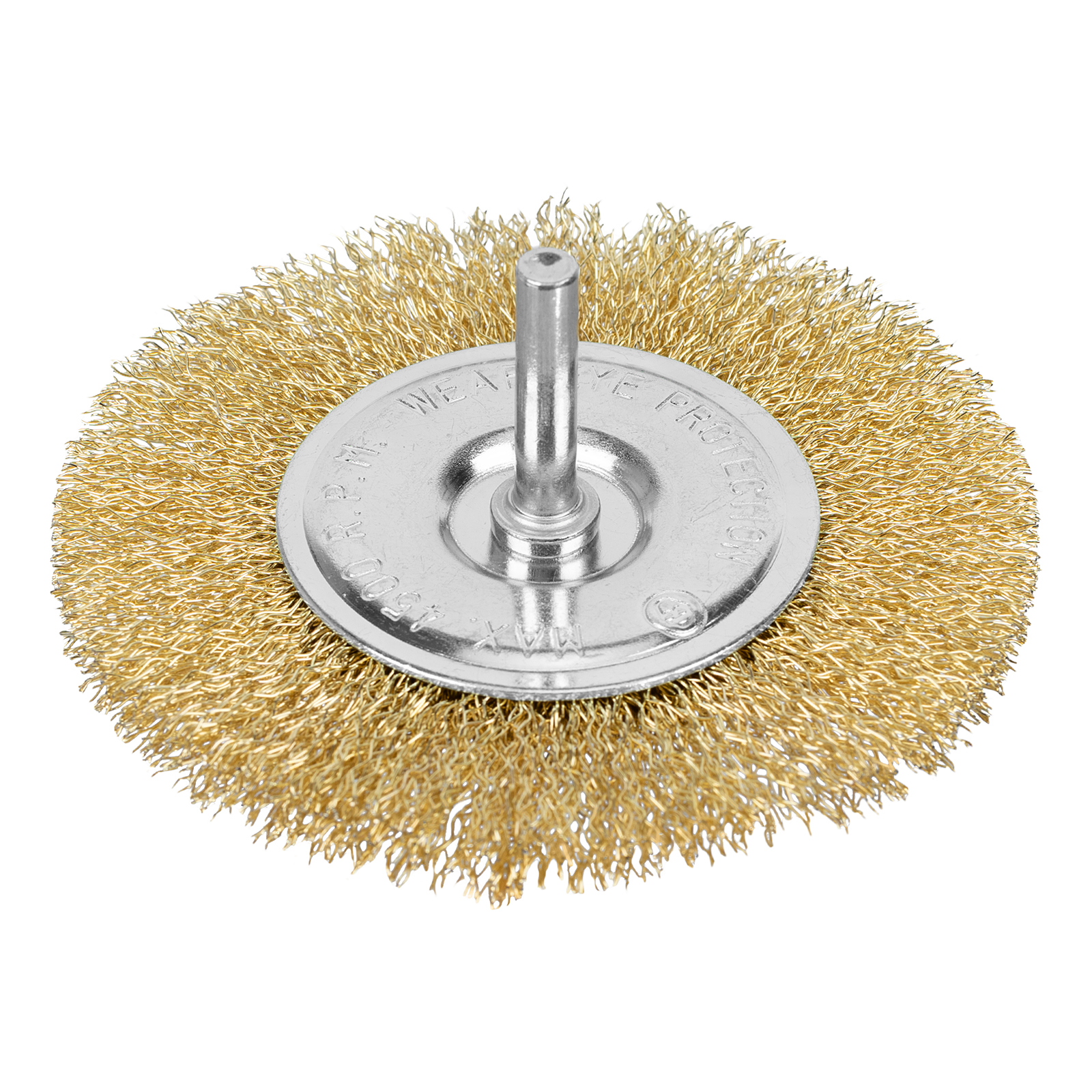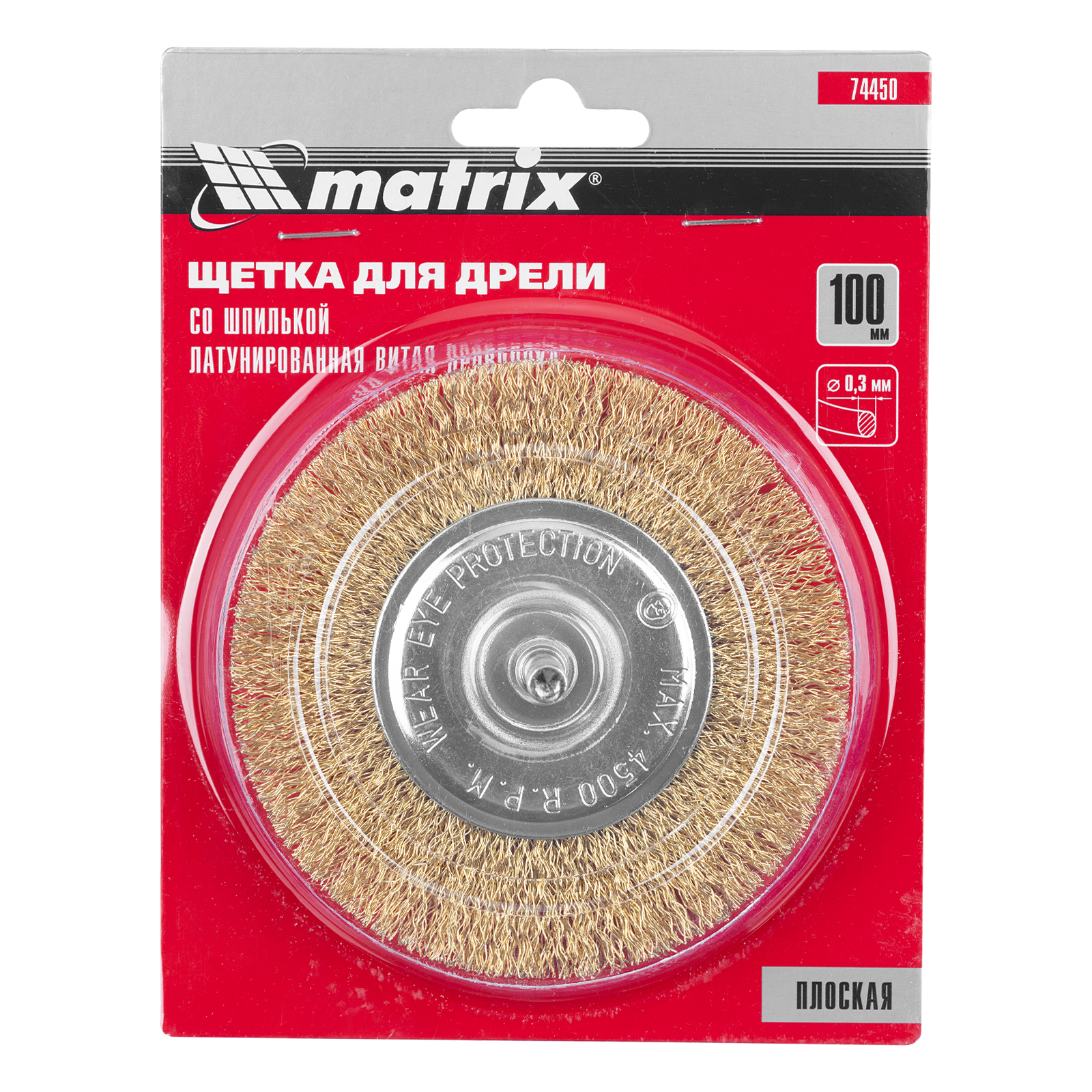 Плоская щетка для дрели Matrix 74450 диаметром 100 мм, со шпилькой и щетиной из латунированной витой проволоки, предназначена для бережной очистки металлических, деревянных, пластиковых поверхностей от загрязнений, старых лакокрасочных материалов и ржавчины. Витая проволока диаметром 0,3 мм проникает в труднодоступные места: пазы, углы, изгибы, узкие участки. Насадку применяют для придания поверхности нужной шероховатости или подчеркивания структуры материала. Хвостовик диаметром 6 мм устанавливается в патрон электродрели, способной работать на рекомендуемой скорости 4500 об/мин. Во время работы следует использовать защитные очки, респиратор, наушники, спецодежду и обувь.