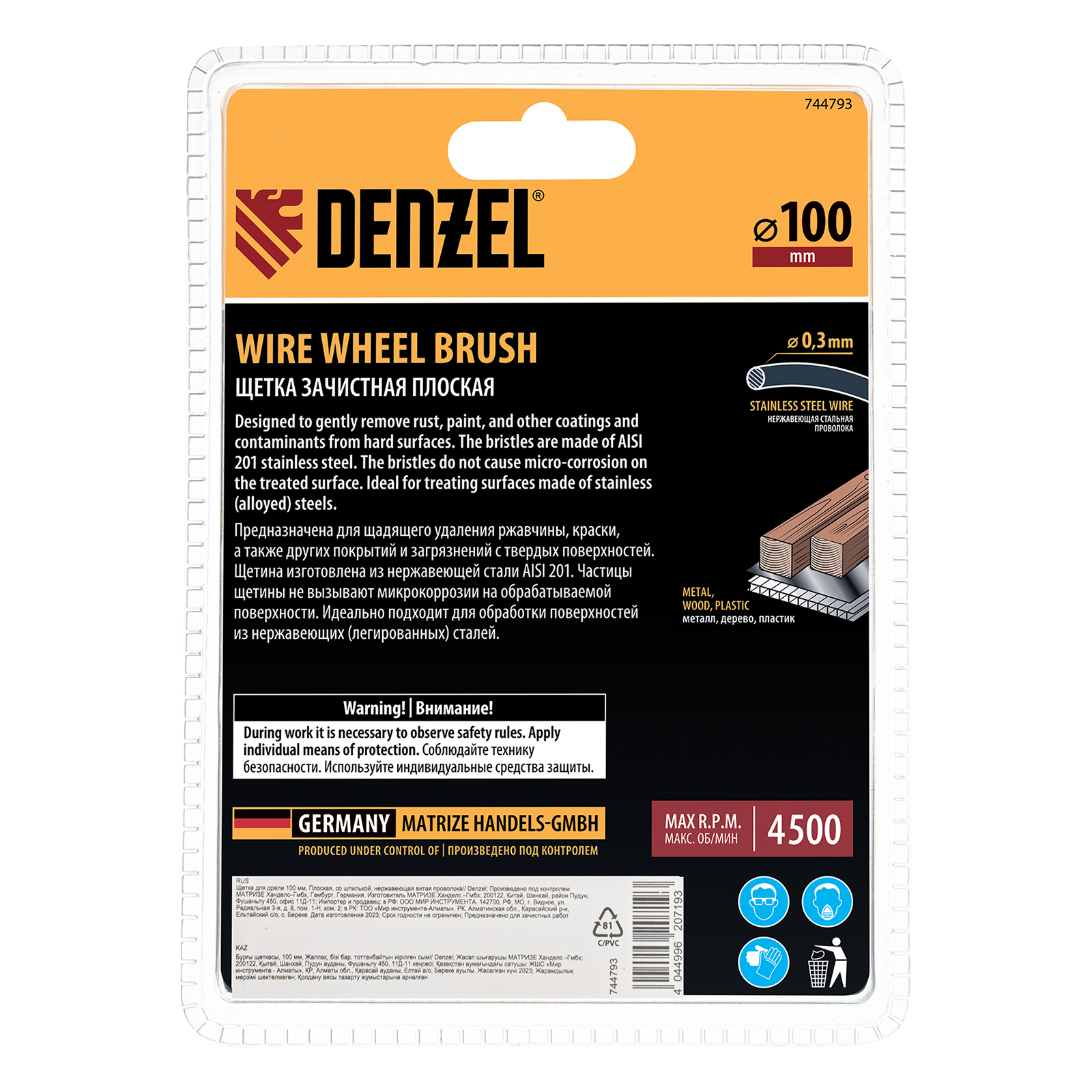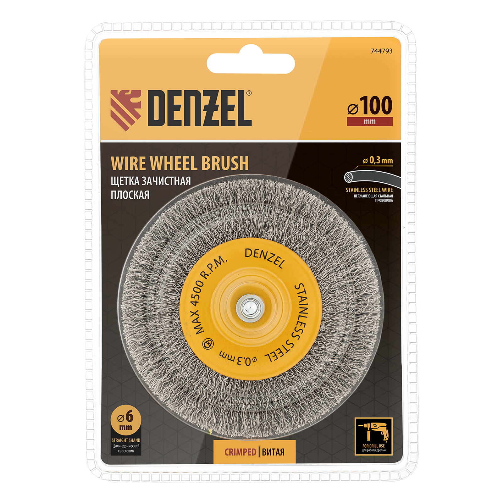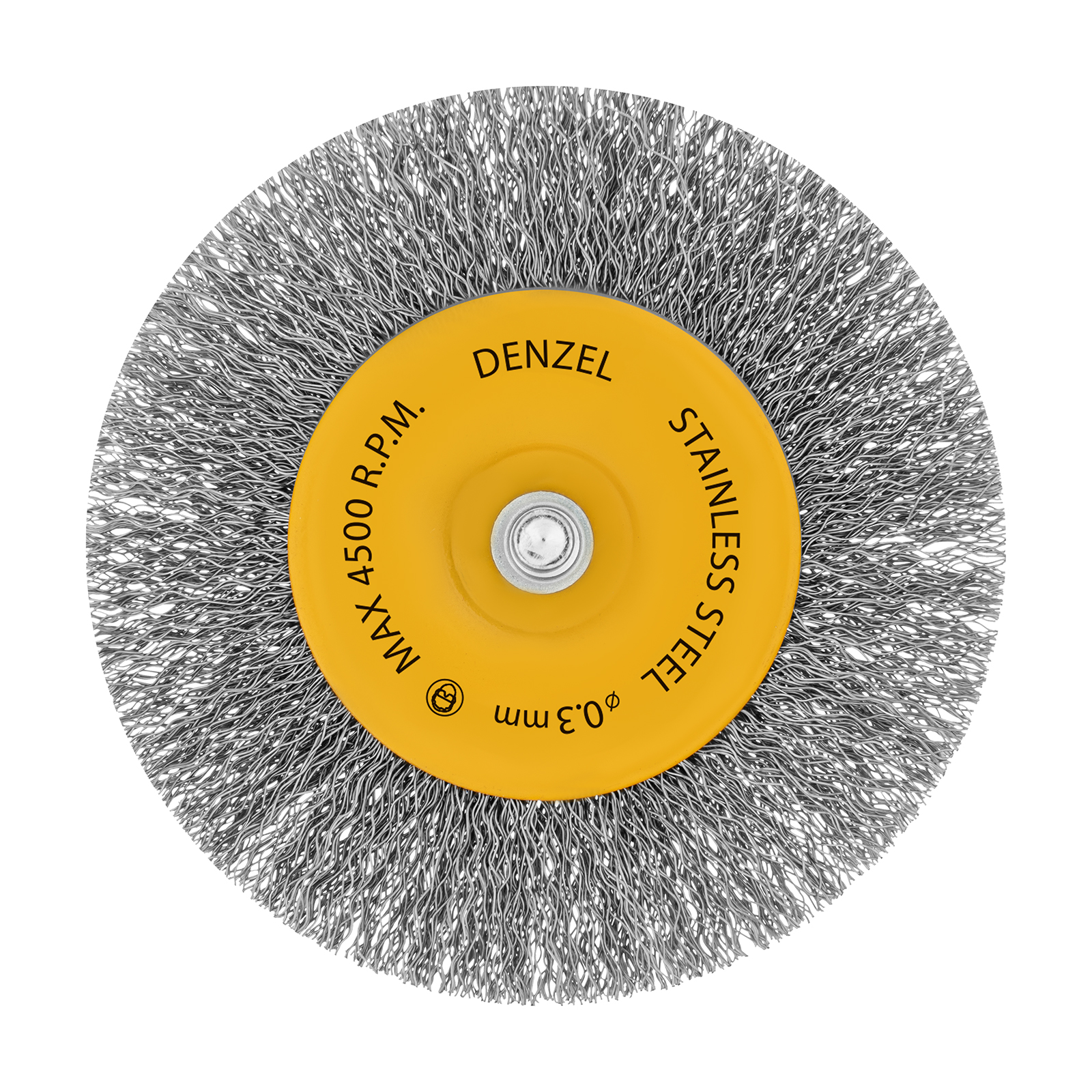 Плоская щетка Denzel 744793 диаметром 100 мм, со шпилькой и щетиной из нержавеющей витой проволоки, предназначена для выполнения зачистных работ. Позволяет обработать поверхность, снять тонкий слой краски, ржавчины, удалить загрязнения. Подходит для твердых материалов: стали, в том числе нержавеющей, древесины, пластика и т.д. Плоская щетка оптимальна для зачистки поверхностей со сложным рельефом, имеющих углы, пазы и изгибы.