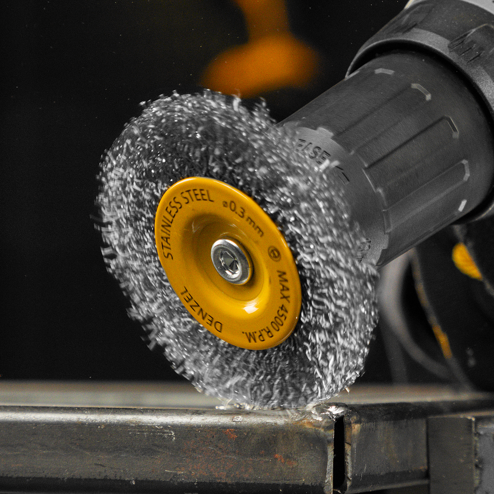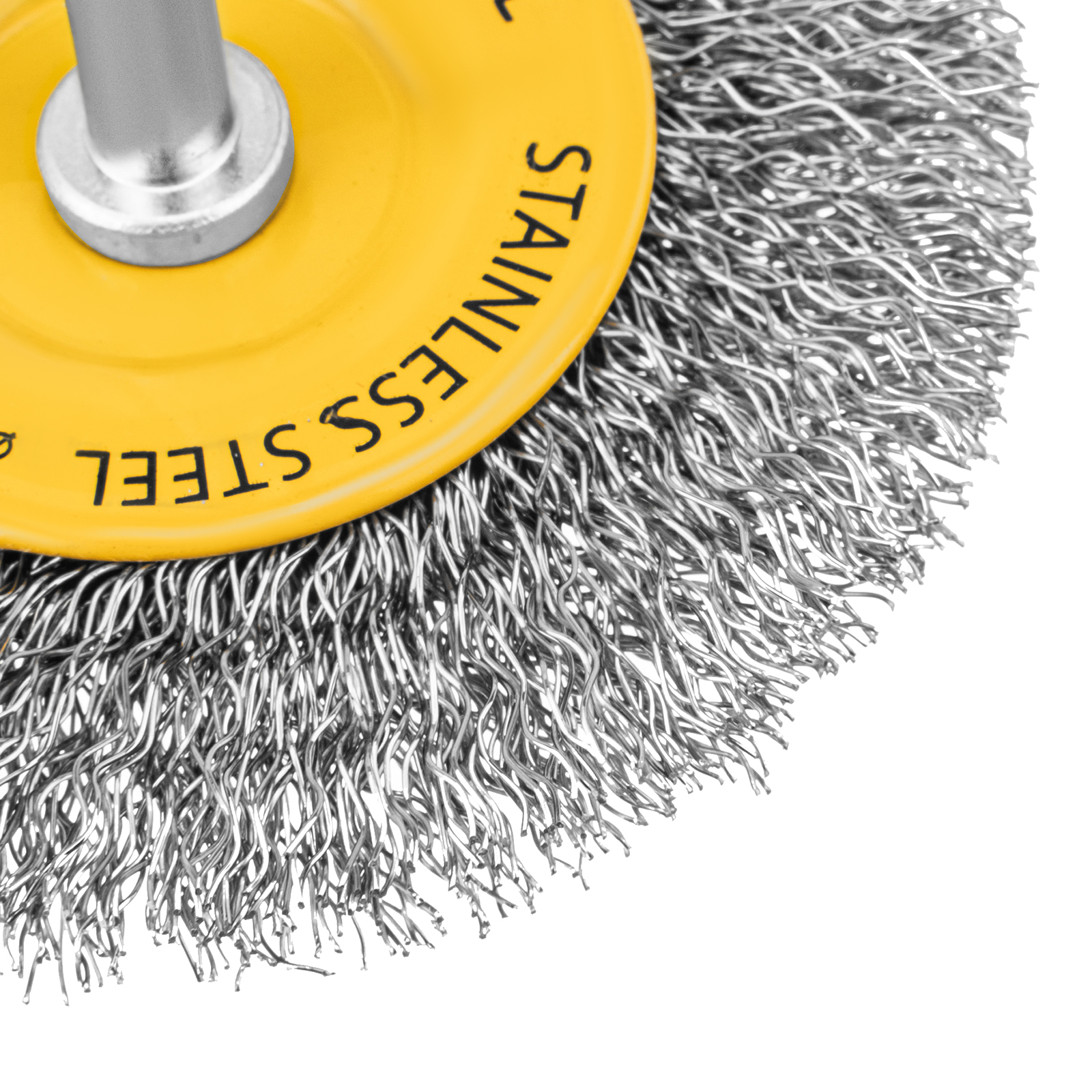 - Быстрая подготовка к работе — щетка имеет хвостовик диаметром 6 мм для установки в патрон дрели.