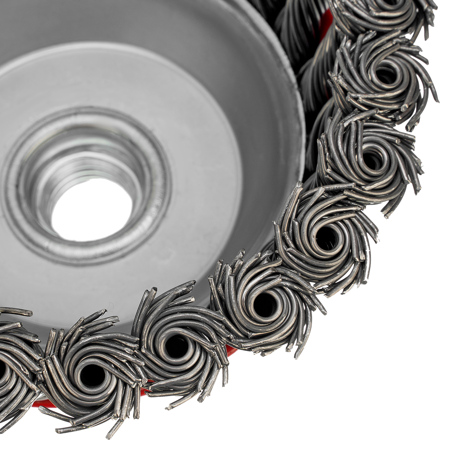Щетка Matrix «Чашка» 74623 диаметром 100 мм, с присоединительной резьбой М14, с щетиной из крученой проволоки диаметром 0,8 мм, устанавливается на УШМ, поддерживающую работу со скоростью 8500 об/мин. Щетина предназначена для грубой (черновой) обработки поверхностей, более агрессивной по сравнению с щетиной 0,5 мм. Изделие подходит для удаления загрязнений, снятия толстого слоя ржавчины, ЛКМ, зачистки сварных швов.
