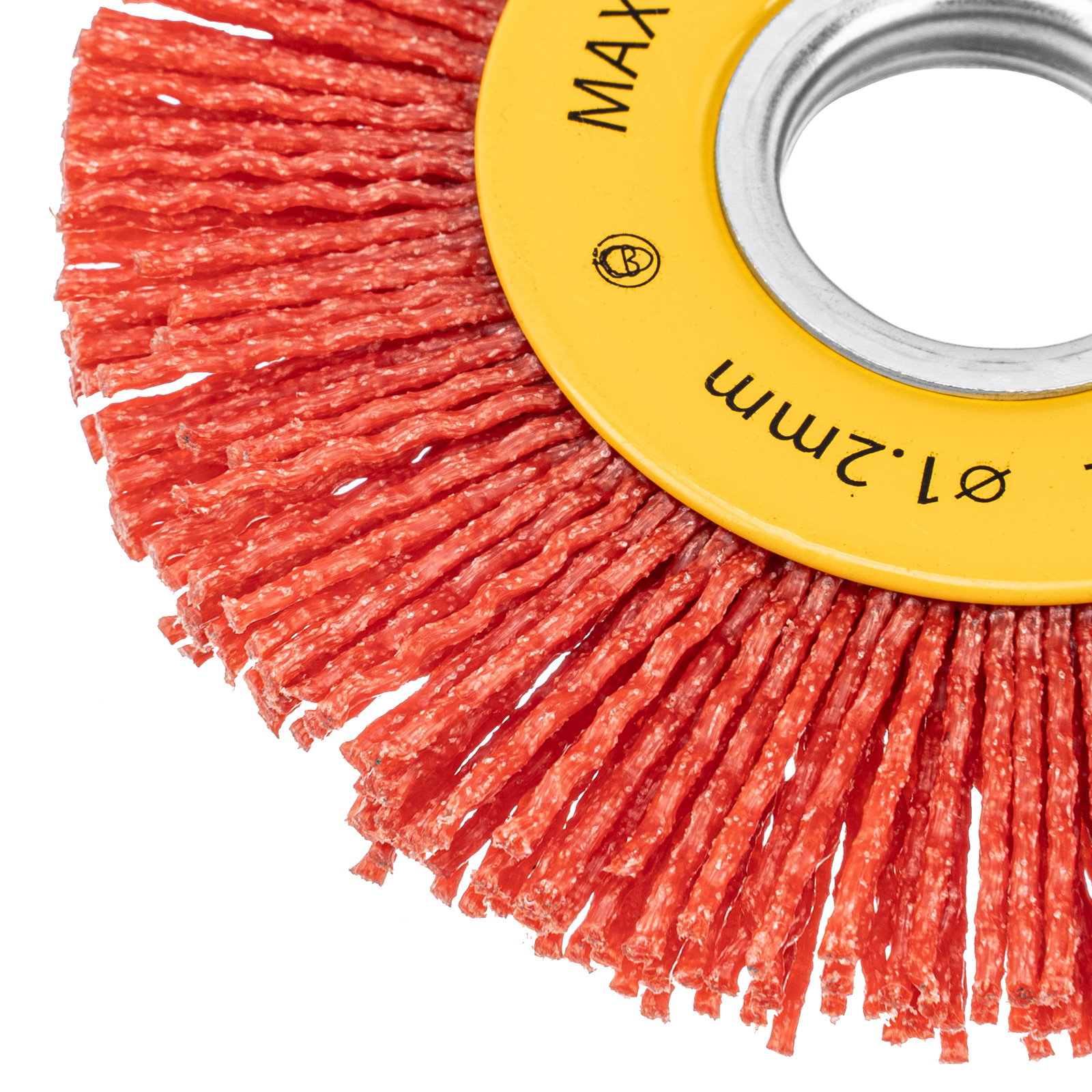 Плоская щетка Denzel 74437 диаметром 100 мм, с нейлоновой щетиной, с посадкой 22,2 мм, устанавливается на фланец УШМ. Предназначена для выполнения шлифовальных работ. Щетина изготовлена из высококачественного нейлона с нанесенным абразивом из оксида алюминия. удаления загрязнений, краски, пятен ржавчины с твердых поверхностей. Позволяет придать шероховатость поверхности, подходит для браширования древесины. Благодаря плоской форме насадка удобна для обработки пазов, изгибов, угловых соединений.