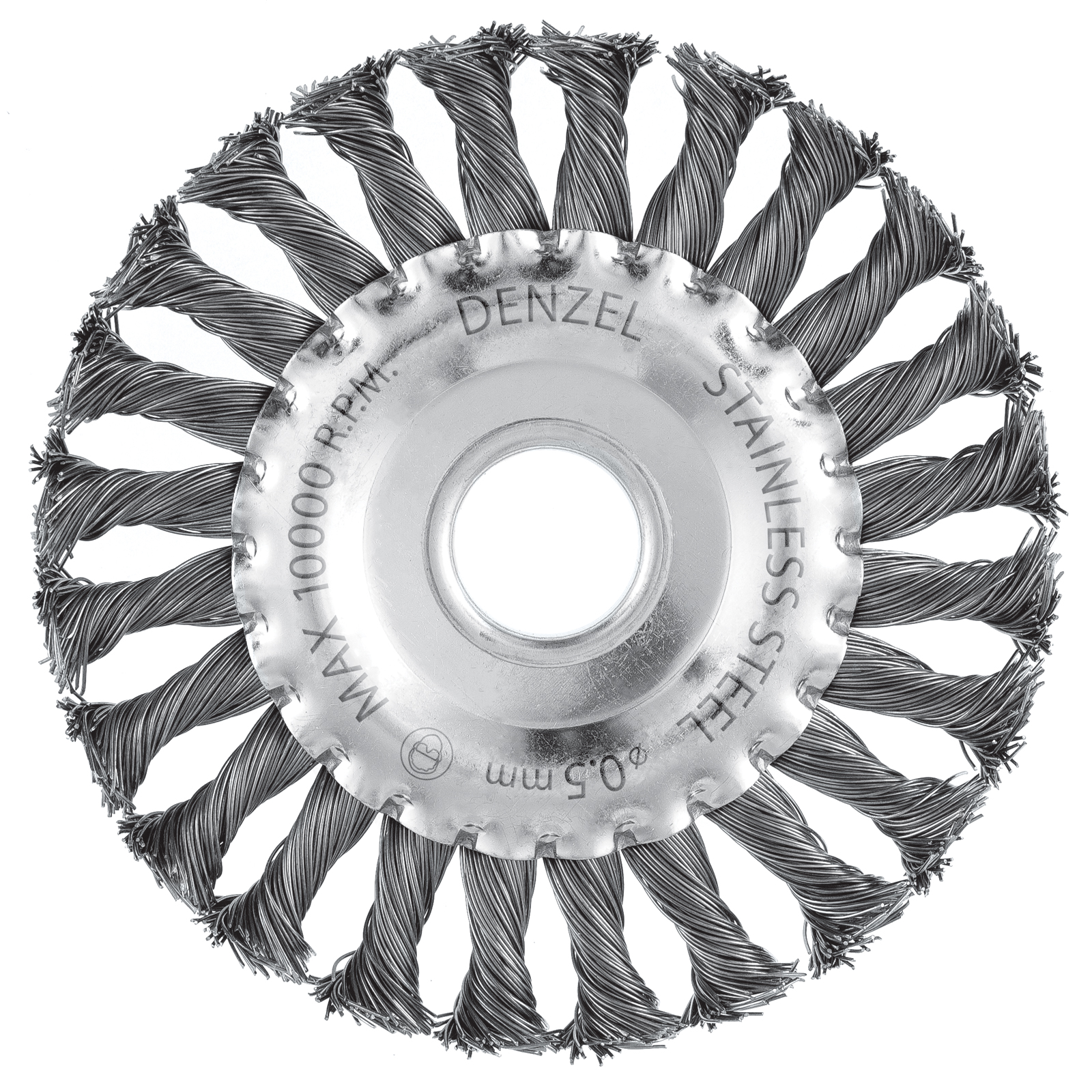 Плоская щетка для УШМ Denzel 746323 диаметром 125 мм, с посадкой 22,2 мм, с щетиной из крученой нержавеющей проволоки 0,5 мм, предназначена для снятия толстого верхнего слоя с металлических, деревянных, бетонных поверхностей. Удаляет загрязнения, ржавчину, старые лакокрасочные покрытия, заусенцы, окалину с ровных поверхностей и в труднодоступных местах. Оптимальна для обработки изделий из нержавеющей стали, а также зачистки сварных швов. Щетку устанавливают на фланец углошлифовальной машины, что удобно для выполнения большого объема работ, не требующих частой смены насадок. Рекомендуемая максимальная скорость вращения 10000 об/мин. Во время работы обязательно использование средств индивидуальной защиты. Щетка будет полезна на строительной площадке, производственном предприятии, а также пригодится в быту.