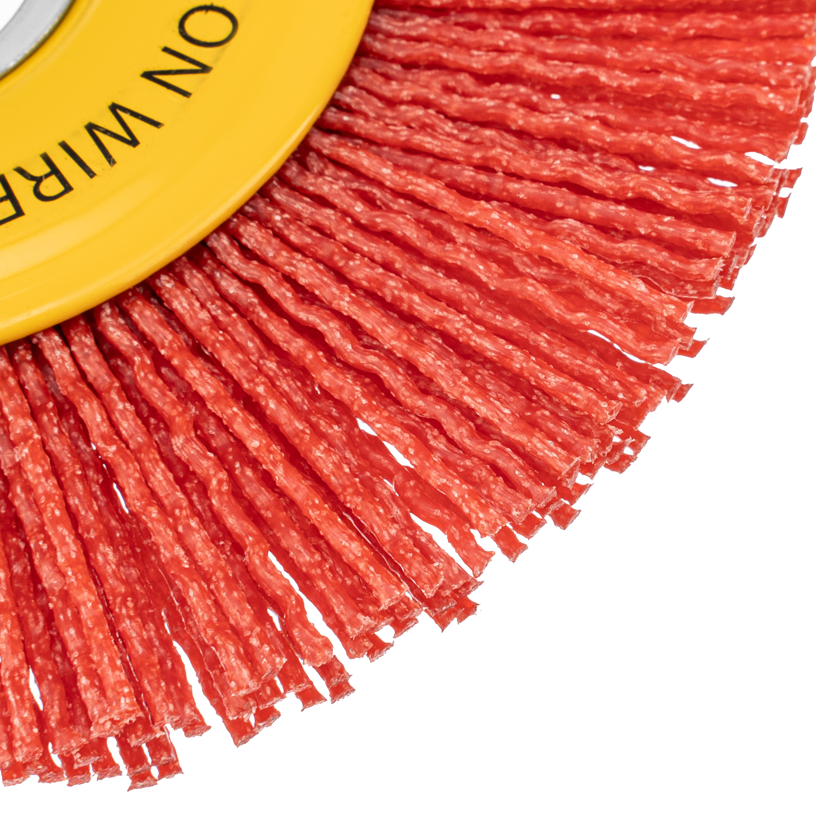 - Высокое качество обработки — в отличие от металлической, нейлоновая щетина не оставляет следов на деревянных поверхностях.