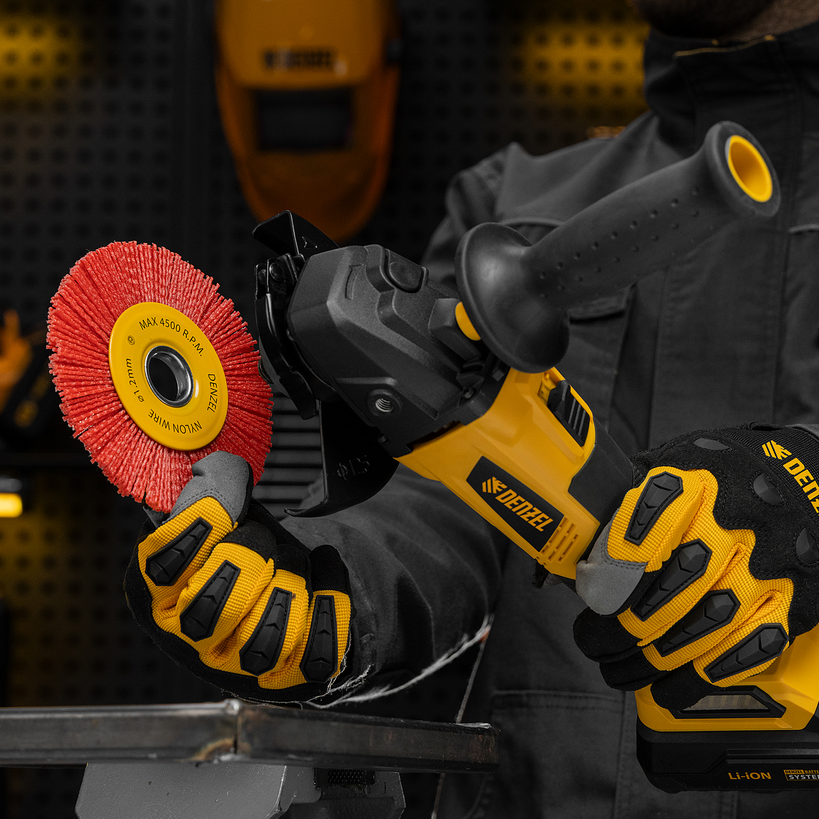 Плоская щетка Denzel 74461 диаметром 125 мм, с нейлоновой щетиной, с посадкой 22,2 мм, устанавливается на фланец УШМ. Предназначена для выполнения шлифовальных работ. Щетина изготовлена из высококачественного нейлона с нанесенным абразивом из оксида алюминия. Щетка оптимальна для деликатного очищения от загрязнений и остатков краски, удаления пятен ржавчины. Позволяет придать шероховатость поверхности, подходит для браширования древесины. Благодаря плоской форме насадка удобна для обработки пазов, изгибов, угловых соединений.