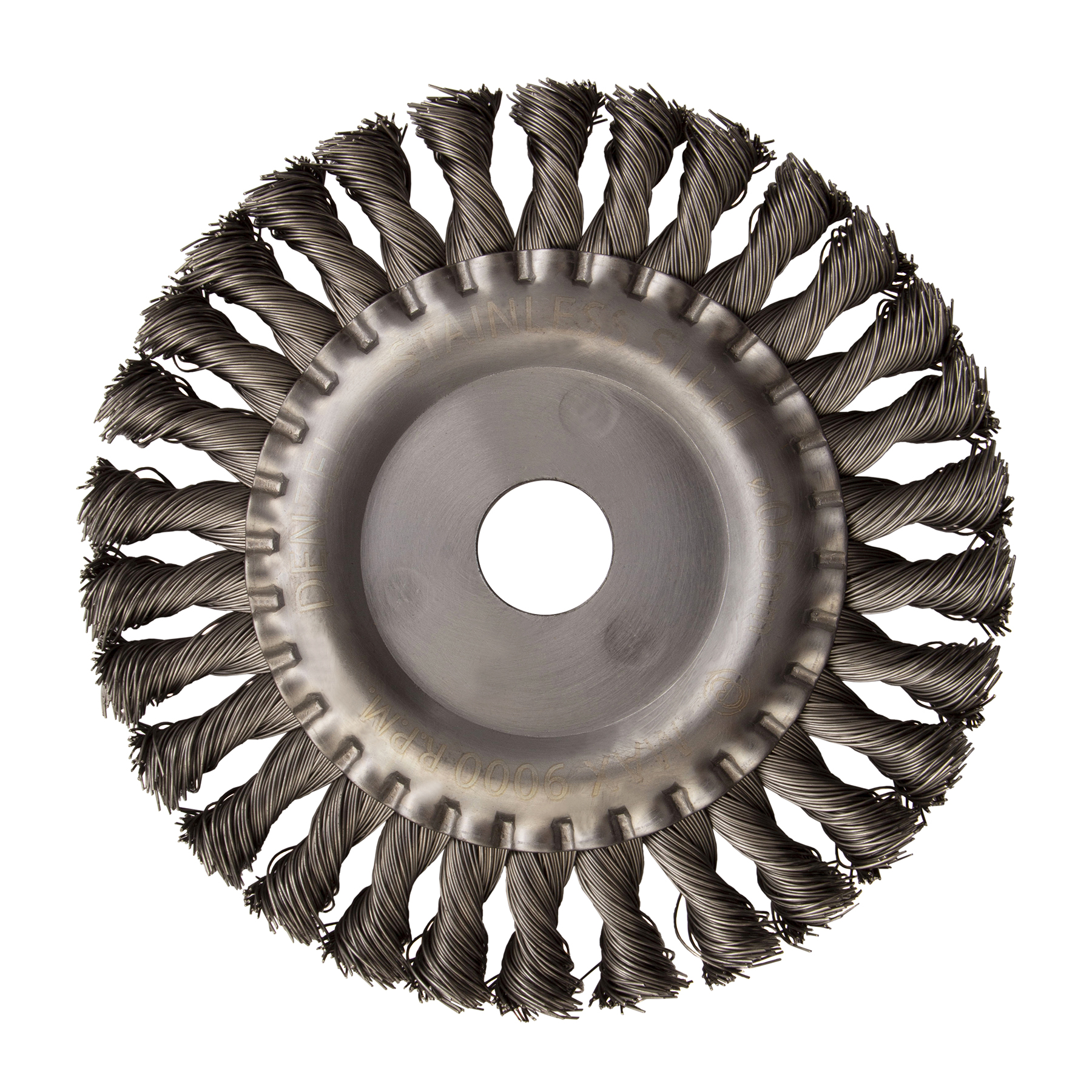 Плоская щетка для УШМ Denzel 746343 диаметром 150 мм, с посадкой 22,2 мм, с щетиной из крученой нержавеющей проволоки 0,5 мм, предназначена для снятия толстого верхнего слоя с металлических, деревянных, бетонных поверхностей. Удаляет загрязнения, ржавчину, старые лакокрасочные покрытия, заусенцы, окалину с ровных поверхностей и в труднодоступных местах. Оптимальна для обработки изделий из нержавеющей стали, а также зачистки сварных швов. Щетку устанавливают на фланец углошлифовальной машины, что удобно для выполнения большого объема работ, не требующих частой смены насадок. Рекомендуемая максимальная скорость вращения 9000 об/мин. Во время работы обязательно использование средств индивидуальной защиты. Щетка будет полезна на строительной площадке, производственном предприятии, а также пригодится в быту.