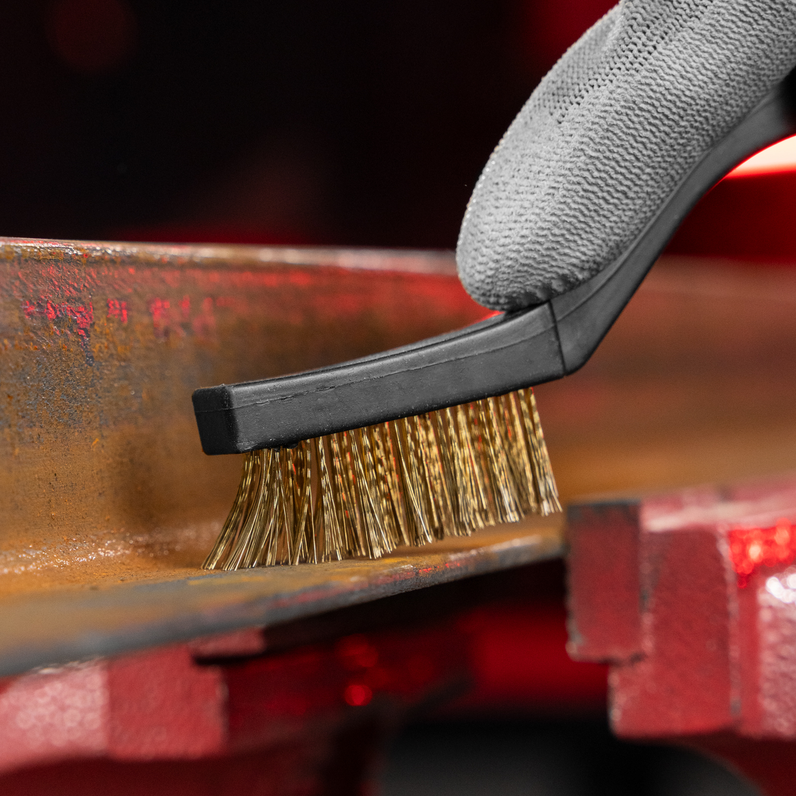 - Высокий ресурс — витая стальная проволока устойчива к деформации, латунированное покрытие защищает щетину от коррозии.