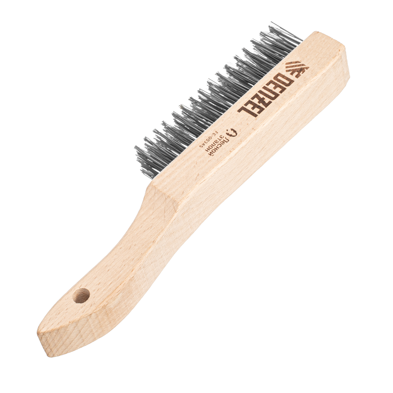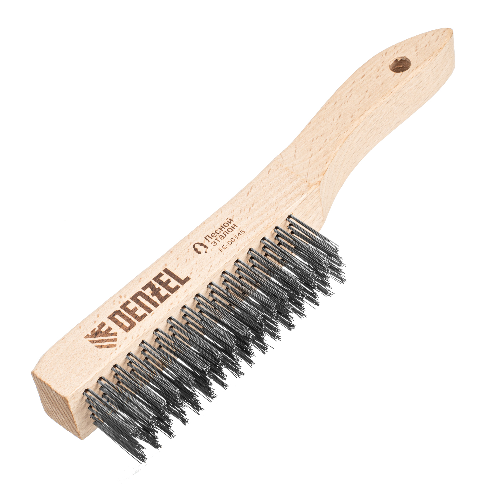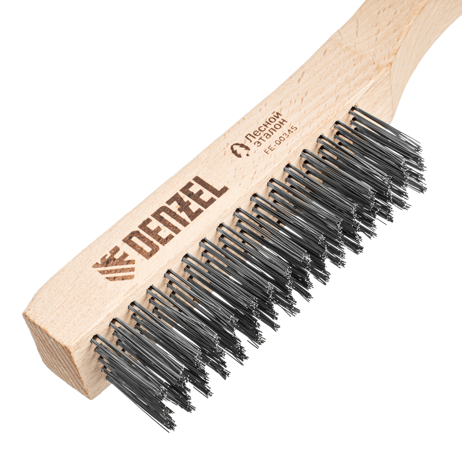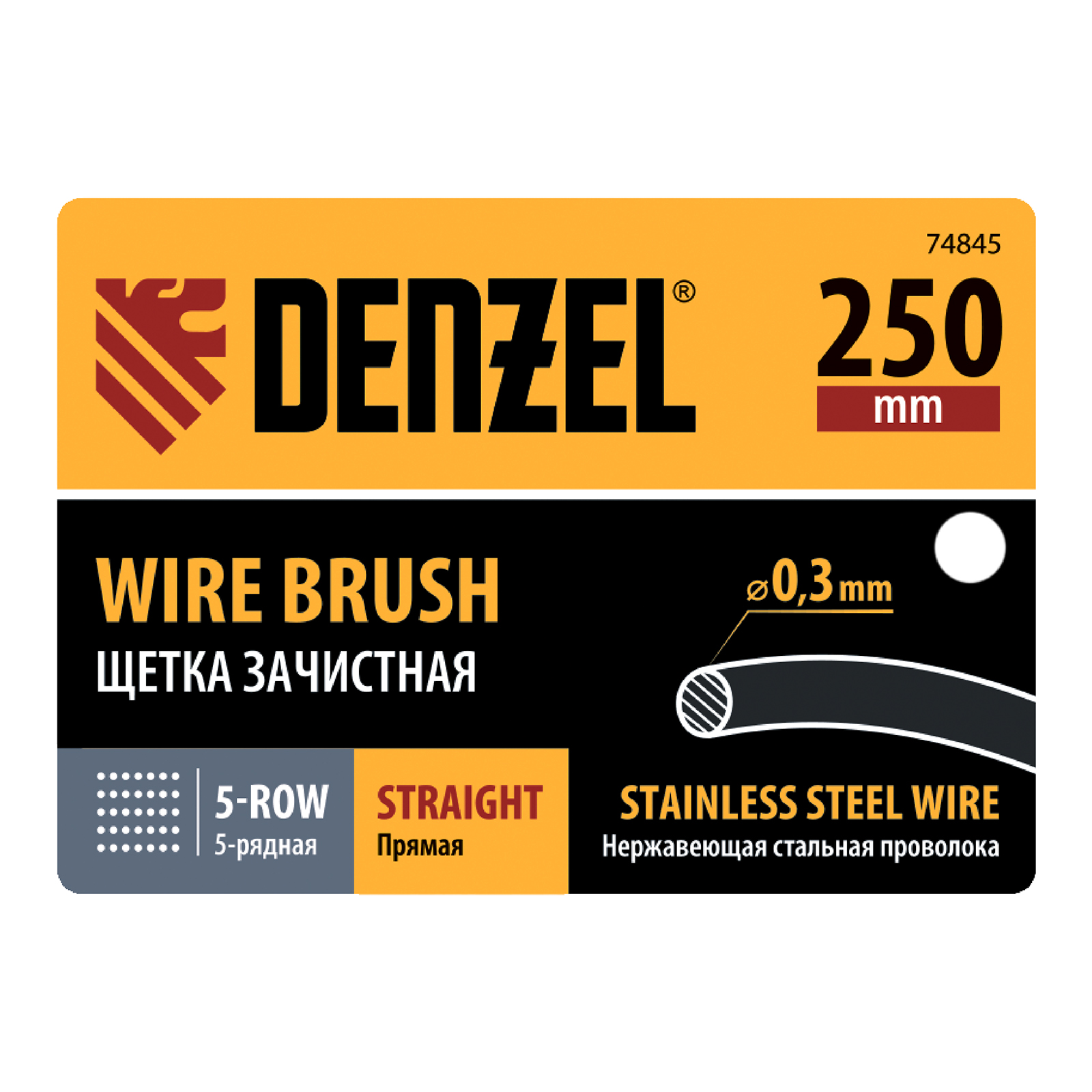 Зачистная 5-рядная щетка Denzel 74845 с прямой проволокой из нержавеющей стали и деревянной рукояткой — ручной инструмент для обработки деревянных, металлических и других поверхностей. Позволяет удалять загрязнения, ржавчину, остатки отделочных покрытий и т.д. Стальная щетина толщиной 0,3 мм с высокой абразивной способностью, расположенная в 5 рядов, обеспечивает эффективное выполнение работ.