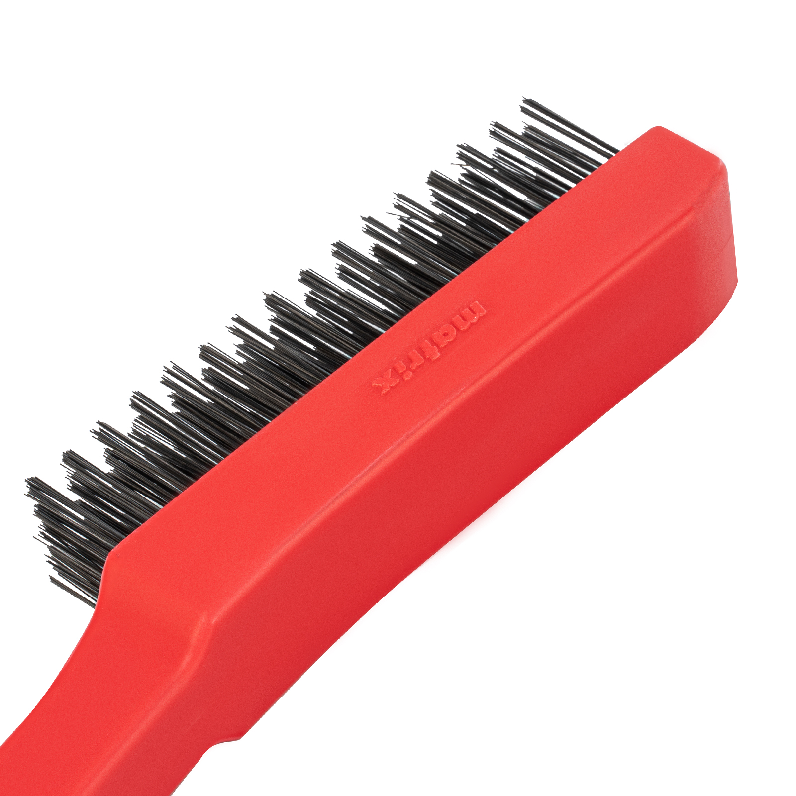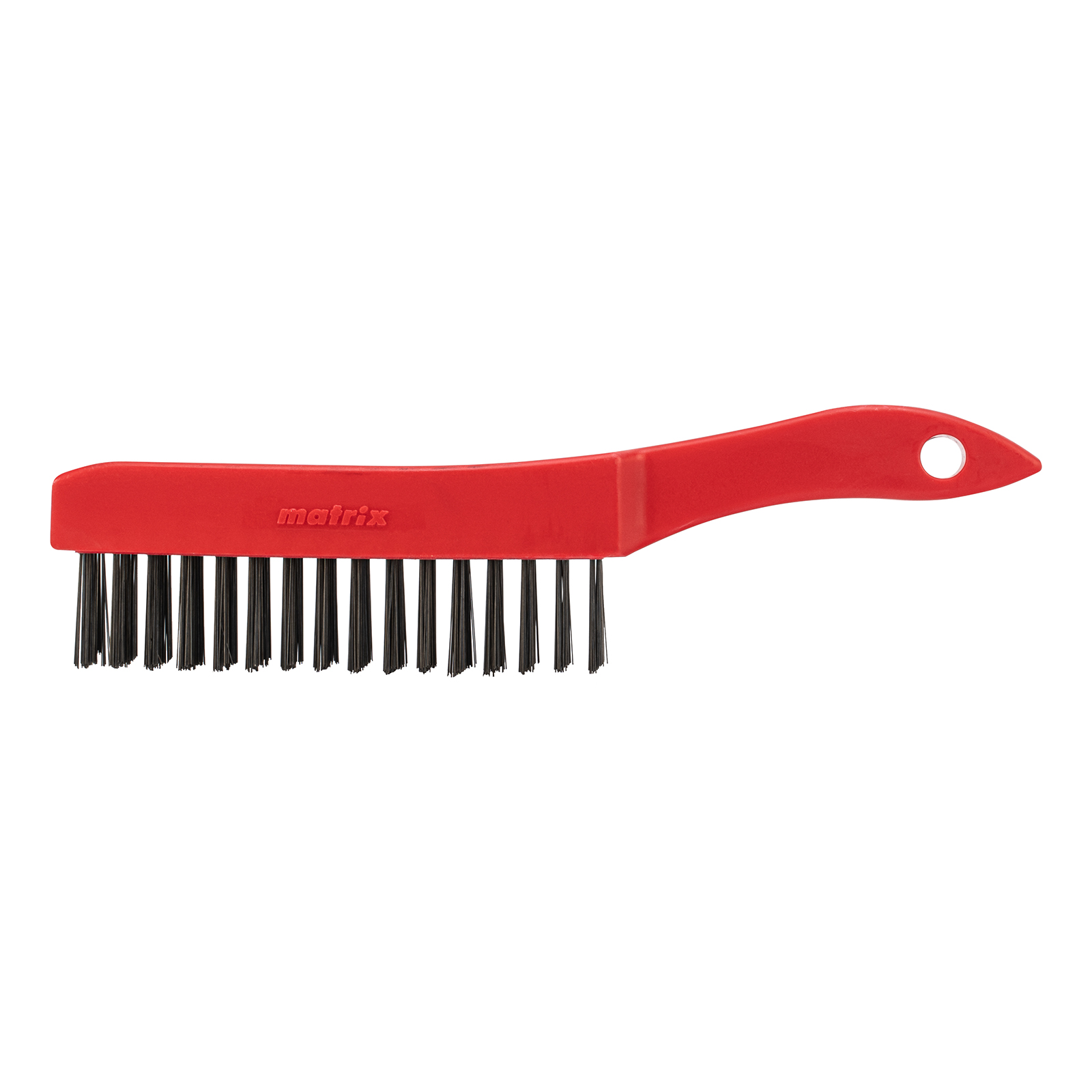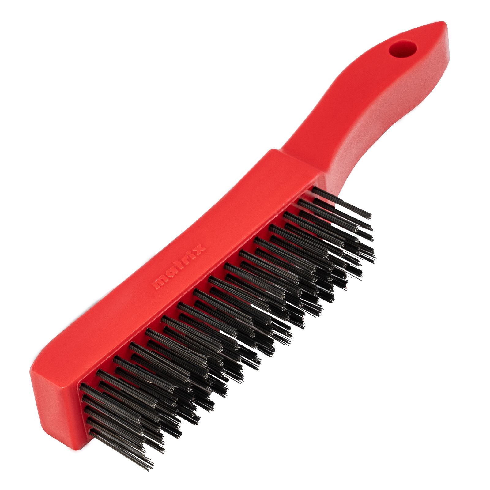 Зачистная пятирядная щетка Matrix 74815 с пластиковой ручкой и щетиной из закаленной прямой проволоки используется для удаления загрязнений, ржавчины, остатков лакокрасочных покрытий с металлических, деревянных, бетонных поверхностей. Пучки расположены в 5 рядов, в каждом пучке 20 щетинок, поэтому щетка выдерживает повышенные нагрузки. Щетка пригодится во время проведения строительных и ремонтных работ, а также будет полезна дома или в гараже.