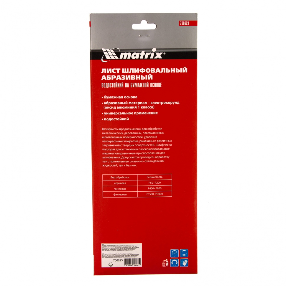 Шлифлист Matrix 756623 размером 115 х 280 мм оптимален для промежуточной обработки. Устанавливается в плоскошлифовальную машину, а также различные шлифовальные приспособления, либо применяться для ручной обработки. Среднезернистый электрокорунд Р100 способен справиться со слоем эмали, лака, краски, удалением налета ржавчины и загрязнений, подготовкой поверхности к отделке.