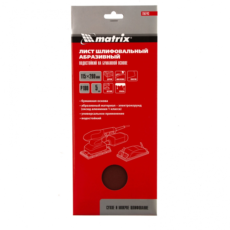 Шлифлист Matrix 756743 размером 115 х 280 мм оптимален для чистовой обработки. Устанавливается в плоскошлифовальную машину, а также различные шлифовальные приспособления, либо применяться для ручной обработки. Зерно электрокорунда Р180 оптимально для удаления тонкого слоя эмали, лака, краски, удалением налета ржавчины и загрязнений, подготовкой поверхности к отделке.