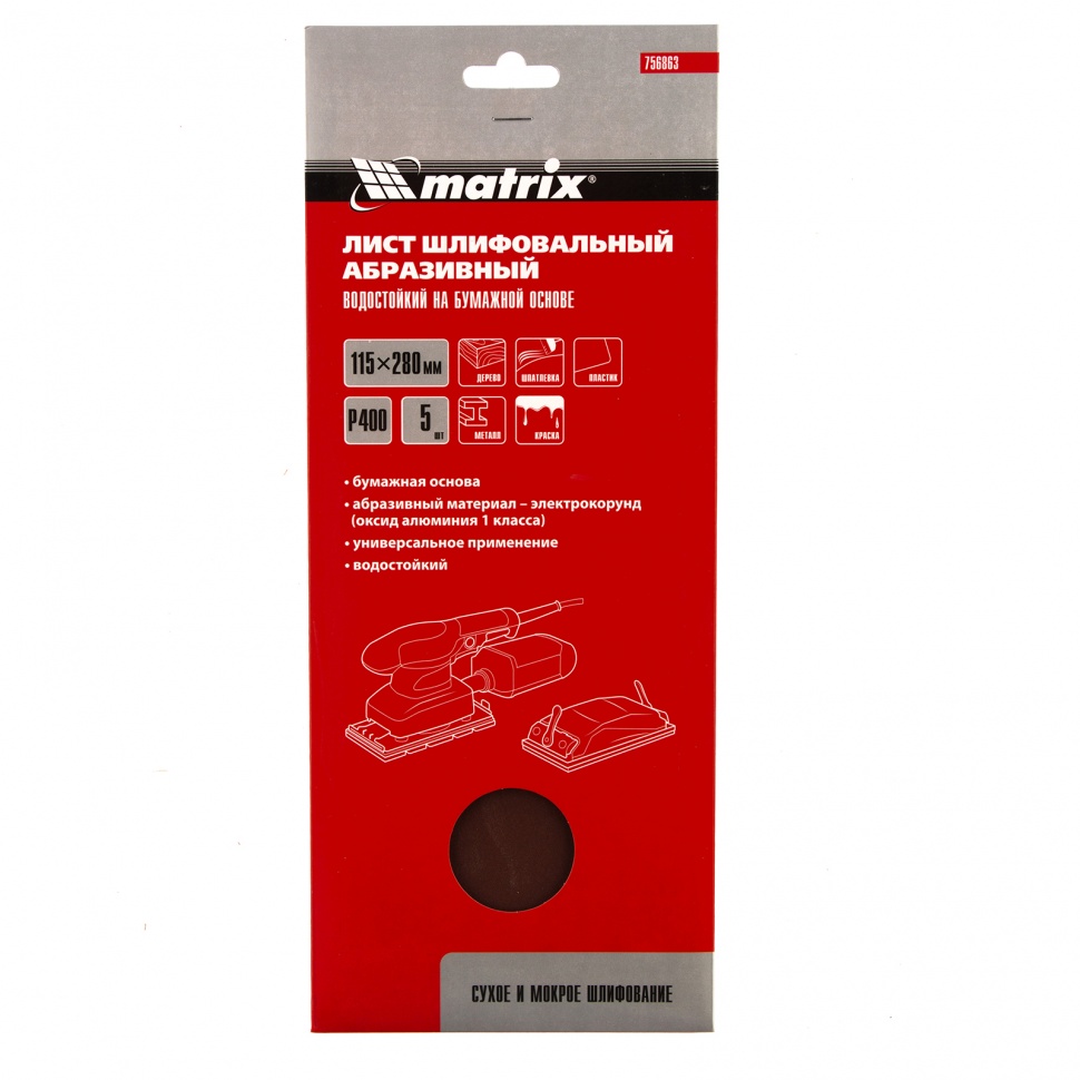 Шлифлист Matrix 756863 размером 115 х 280 мм оптимален для чистовой обработки. Устанавливается в плоскошлифовальную машину, а также различные шлифовальные приспособления, либо применяться для ручной обработки. Мелкозернистый электрокорунд Р400 оптимален для получения гладкой поверхности.