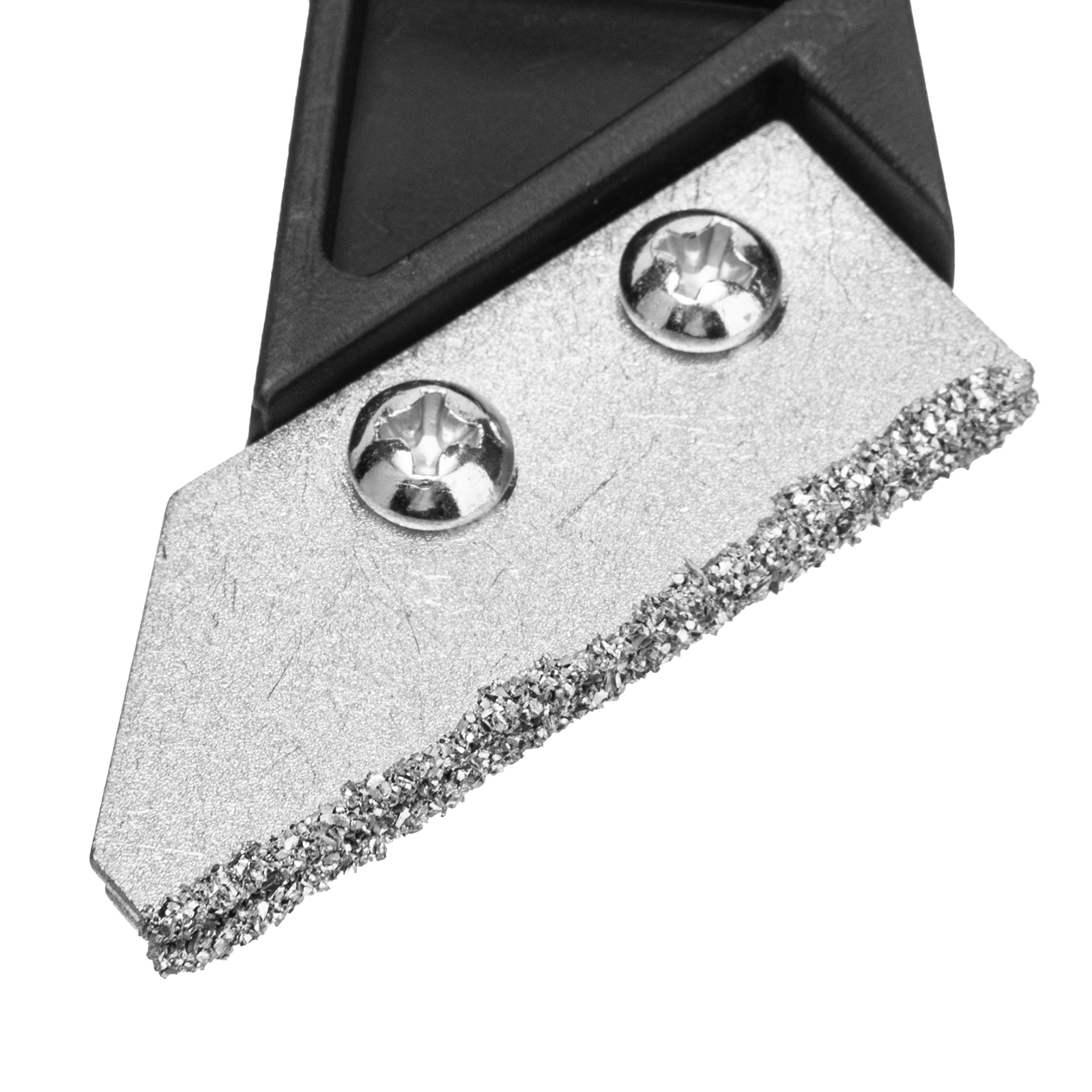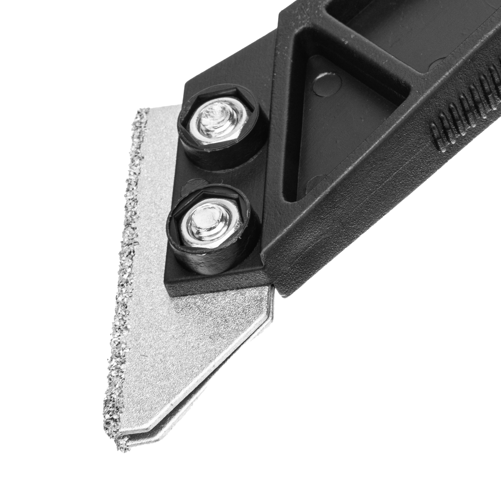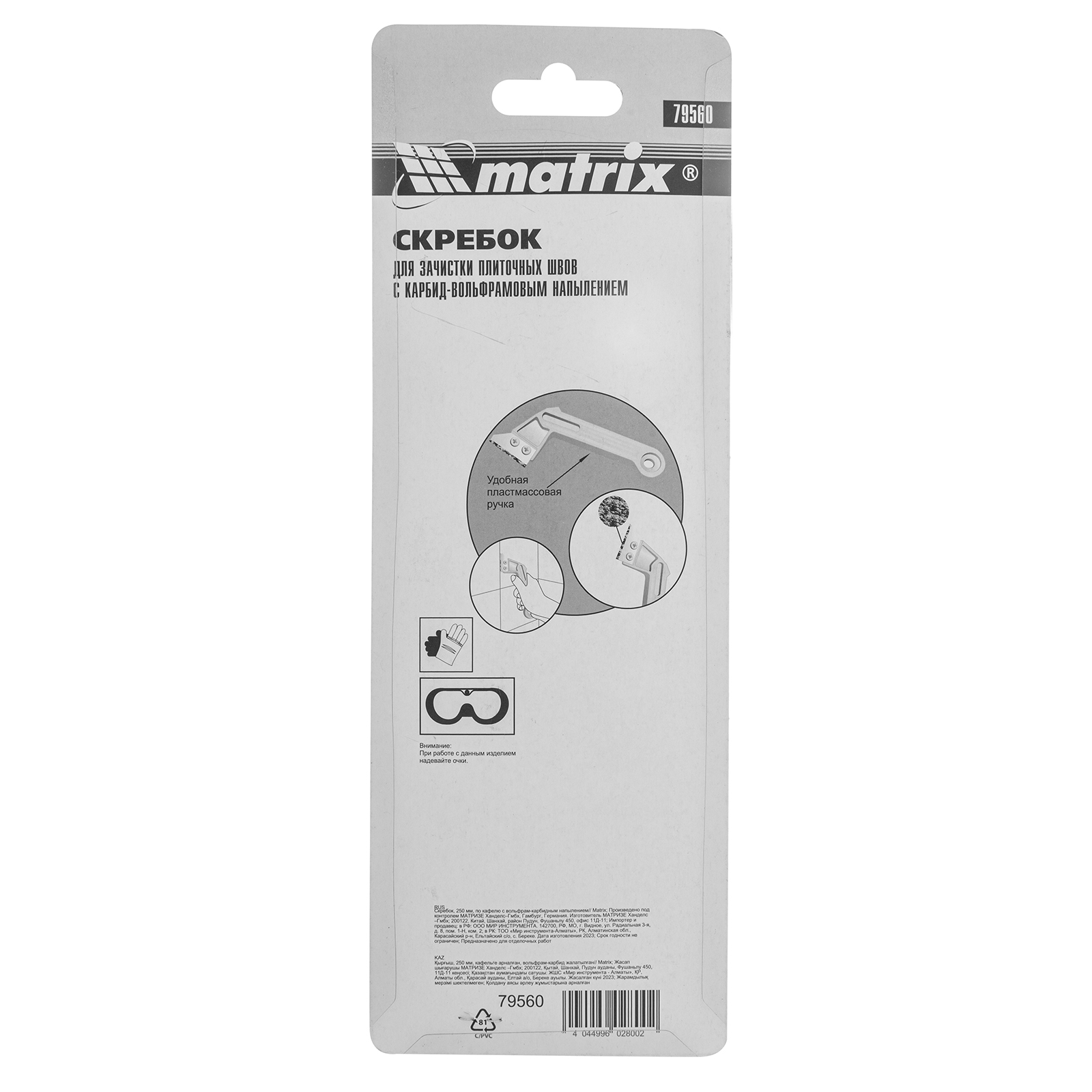 Скребок по кафелю Matrix 79560 длиной 250 мм, с вольфрам-карбидным напылением, используется для затирки швов между плитками, удаления и выравнивания герметика и силикона, а также для снятия обоев и старой краски. Пригодится для работы с кафелем, стеклом и керамикой, подходит для бытового и профессионального применения.
