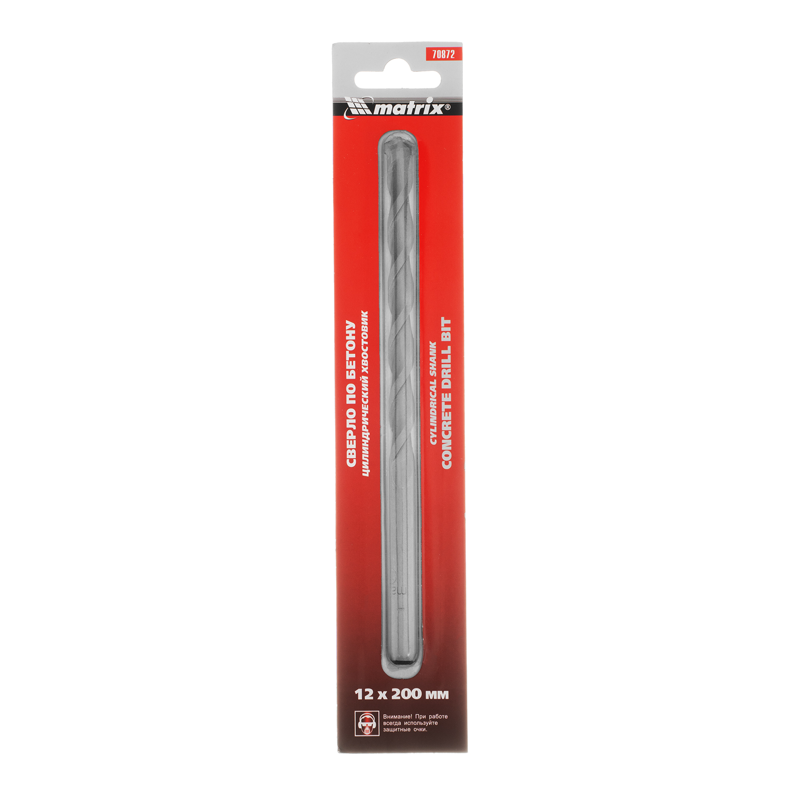 Сверло Matrix 70872 размером 12 х 200 мм, с цилиндрическим хвостовиком, устанавливается на дрель и используется для получения отверстий в бетоне, кирпиче, мраморе и других твердых материалах. Оно рассчитано на полупрофессиональное использование, подходит также для осуществления ремонтных и монтажных работ в быту.