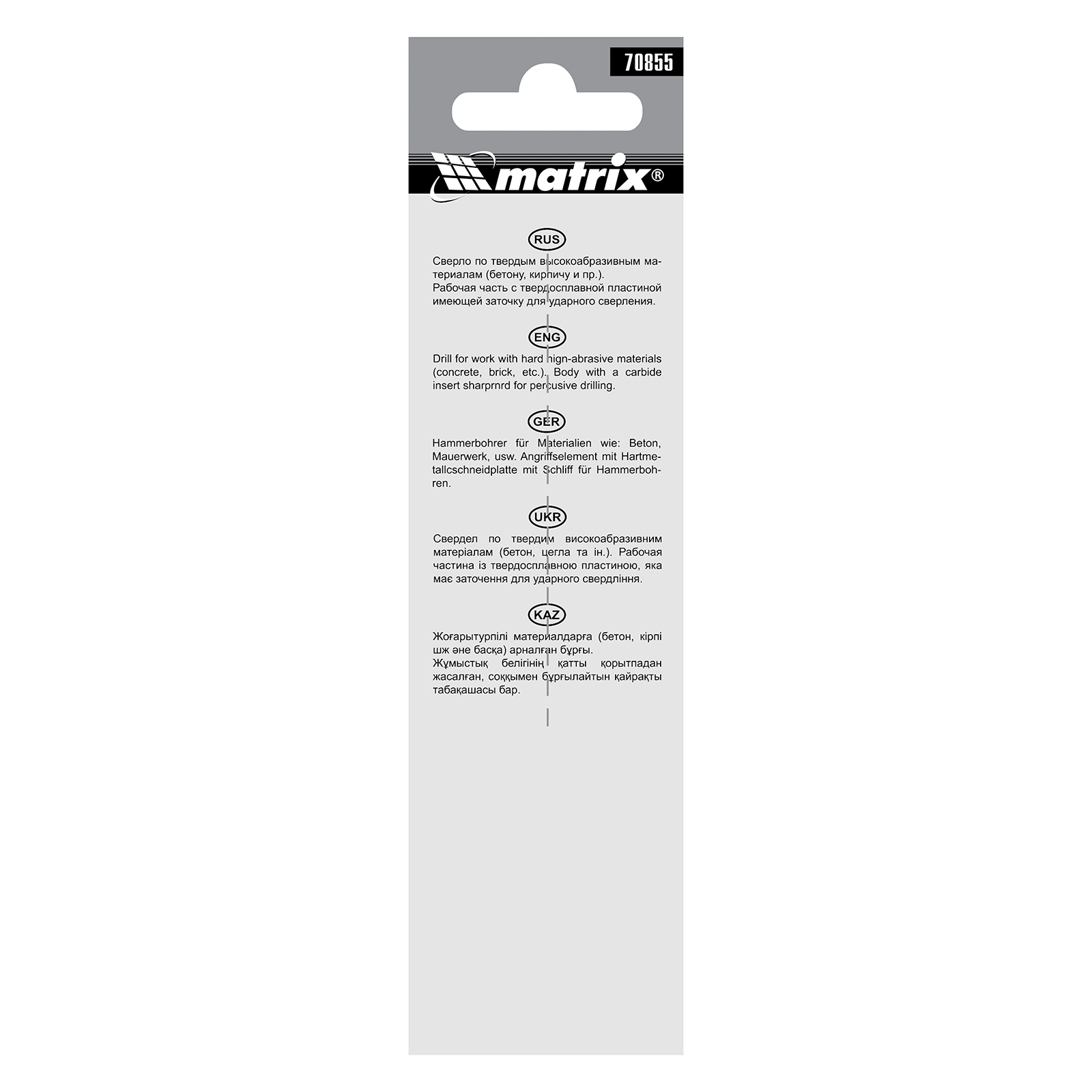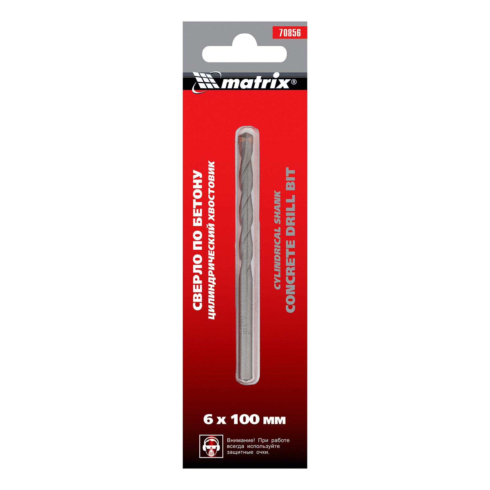 Сверло Matrix 70856 размером 6 х 100 мм, с цилиндрическим хвостовиком, устанавливается на дрель и используется для получения отверстий в бетоне, кирпиче, мраморе и других твердых материалах. Оно рассчитано на полупрофессиональное использование, подходит также для осуществления ремонтных и монтажных работ в быту.