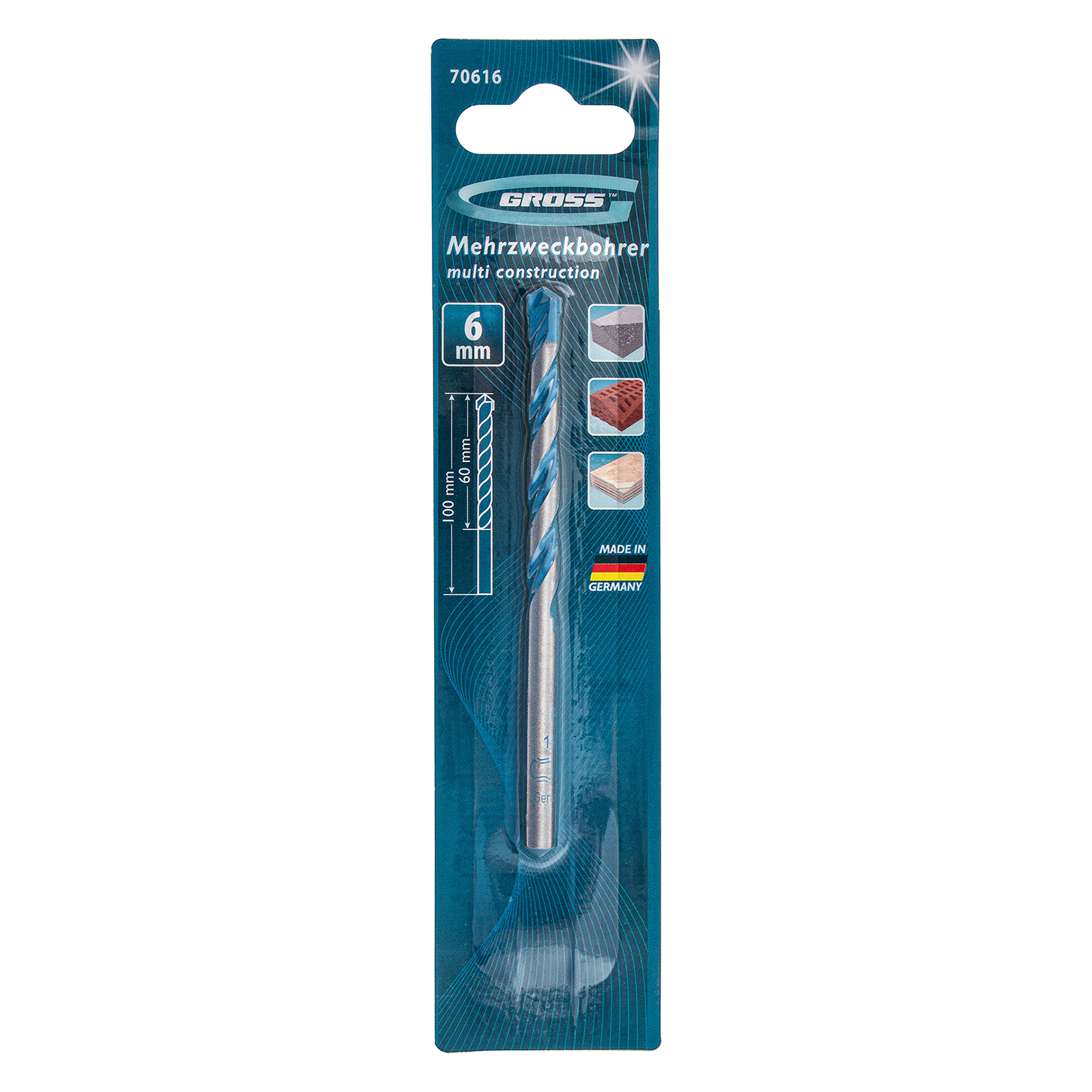 Сверло по бетону Gross Multipurpose Pro 70616 позволяет получать отверстия диаметром 6 мм в камне, бетоне и кирпиче. Подходит для работ по металлу и дереву, что позволяет сверлить разные материалы без замены оснастки. Сверло будет полезно во время строительства и ремонта, а также пригодится в быту.
