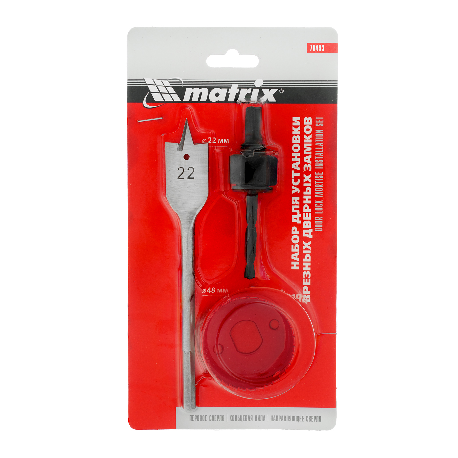 Набор Matrix 70493 включает в себя инструменты, необходимые для установки врезных замков с посадочными диаметрами ручек 22 мм/48 мм: перовое и спиральное сверла, а также кольцевую коронку. С его помощью можно самостоятельно установить замок на деревянные двери, не тратя время и средства на вызов мастера.