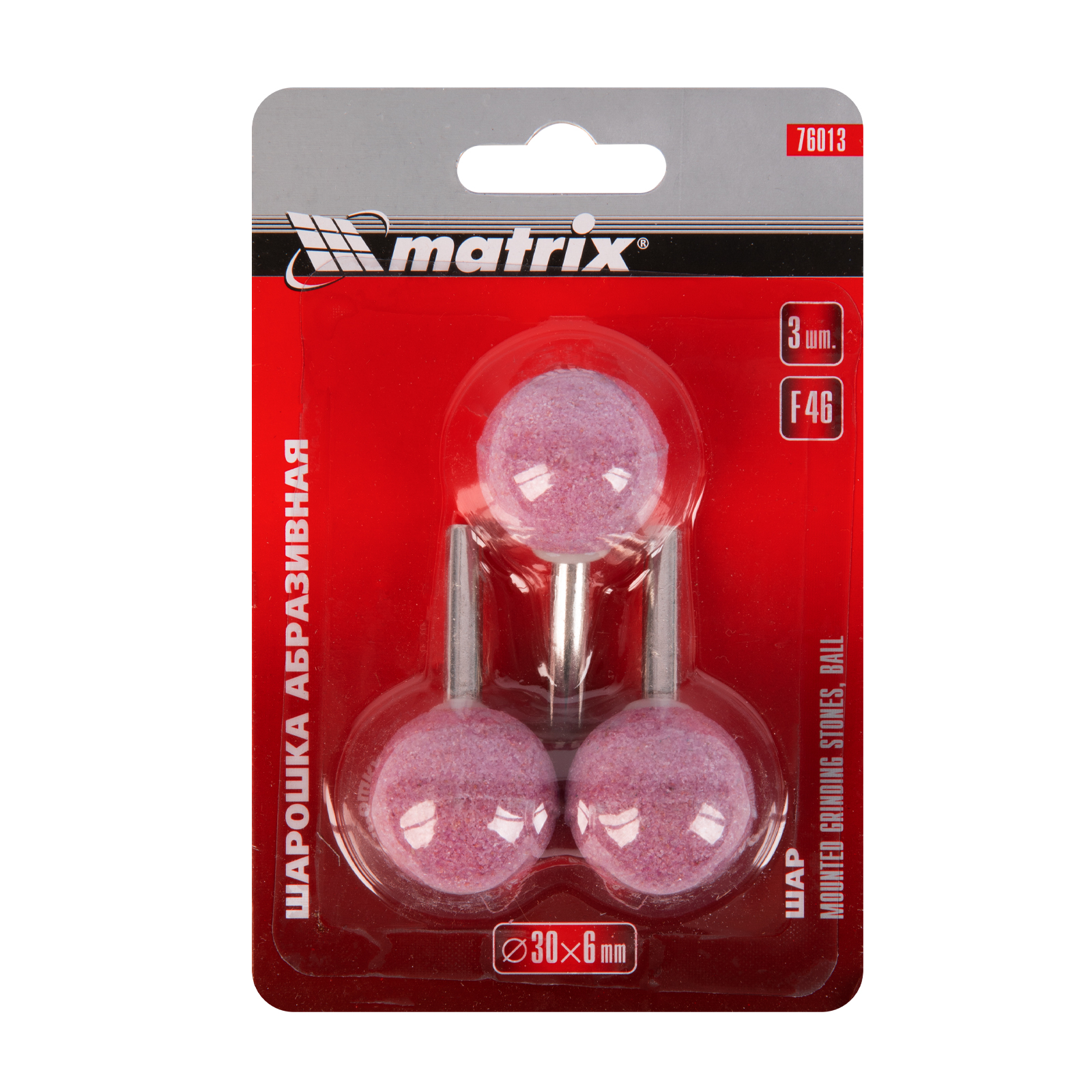 Шарошка абразивная Matrix 76013 зернистостью F46 выполнена в форме шара диаметром 30 мм с хвостовиком диаметром 6 мм. Используется в качестве оснастки на дрелях и шуруповертах, а также ПШМ при проведении столярных, ремонтных, строительных работ. Благодаря головке в форме шара шарошка может снять фаску и заусенцы, зачистить детали со сложной формой.
