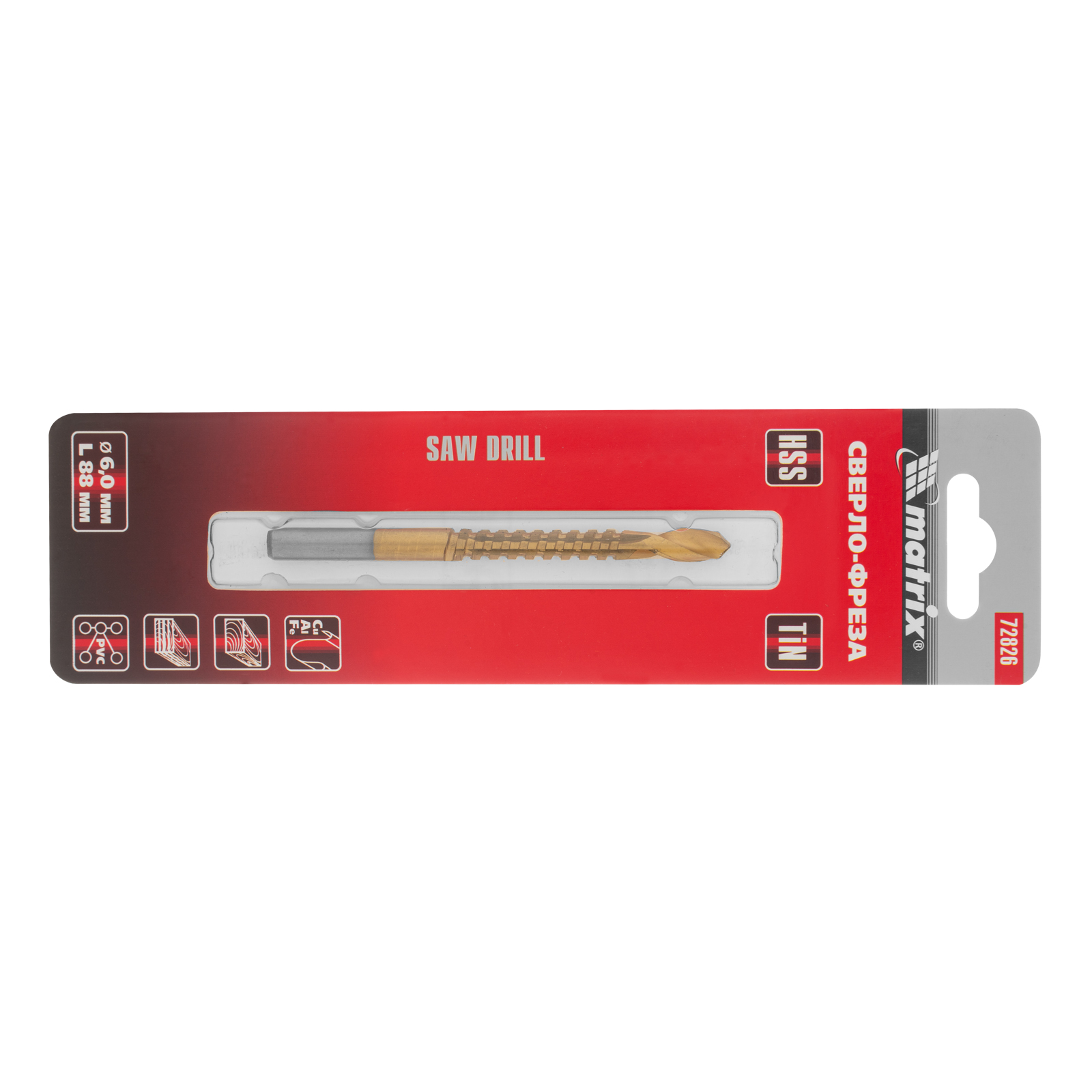 Универсальное сверло-фреза Matrix 72826 диаметром 6 мм, с нитридтитановым покрытием и цилиндрическим хвостовиком, — многофункциональный режущий инструмент, позволяющий сверлить и фрезеровать листовые материалы без смены оснастки. Оптимально для работы с металлом, древесиной любых пород, фанерой, пластмассой и другими материалами.