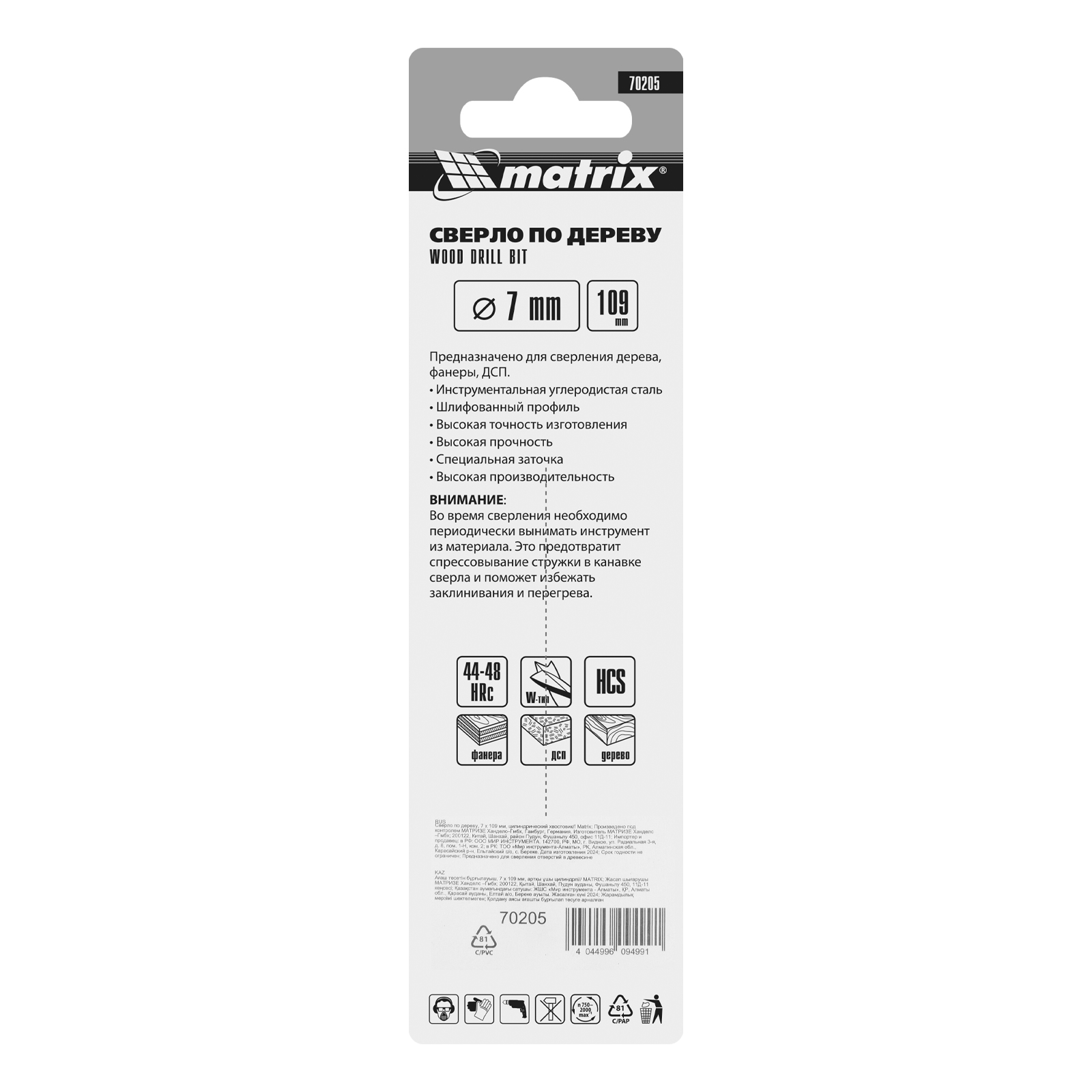 Сверло по дереву Matrix 70205 размером 7 х 109 мм, с цилиндрическим хвостовиком, предназначено для получения отверстий в древесине. Особая конструкция обеспечивает эффективный отвод стружки и получение точного и ровного отверстия. Оснастка пригодится при проведении строительных, ремонтных и отделочных работ.