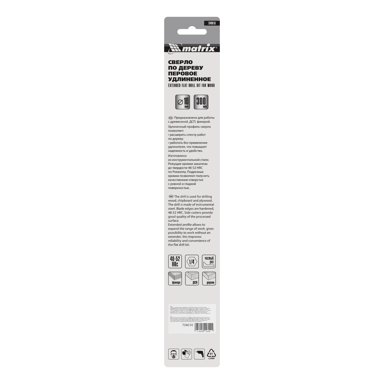 Удлиненное перовое сверло по дереву Matrix 704010 диаметром 10 мм, с 6-гранным хвостовиком, за счет длины 300 мм позволяет получать глубокие отверстия без необходимости использования удлинителя. Эффективно сверлит древесину любой твердости.