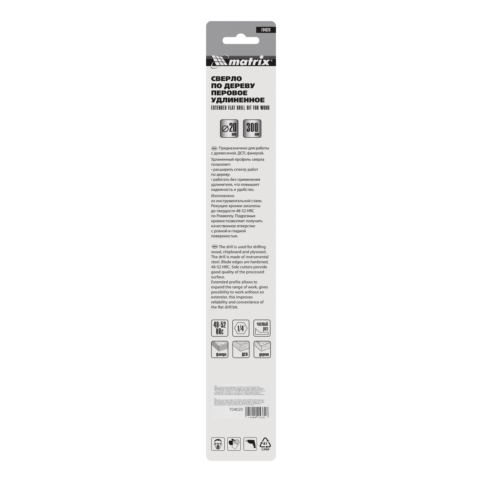 Удлиненное перовое сверло по дереву Matrix 704020 диаметром 20 мм, с 6-гранным хвостовиком, за счет длины 300 мм позволяет получать глубокие отверстия без необходимости использования удлинителя. Эффективно сверлит древесину любой твердости.