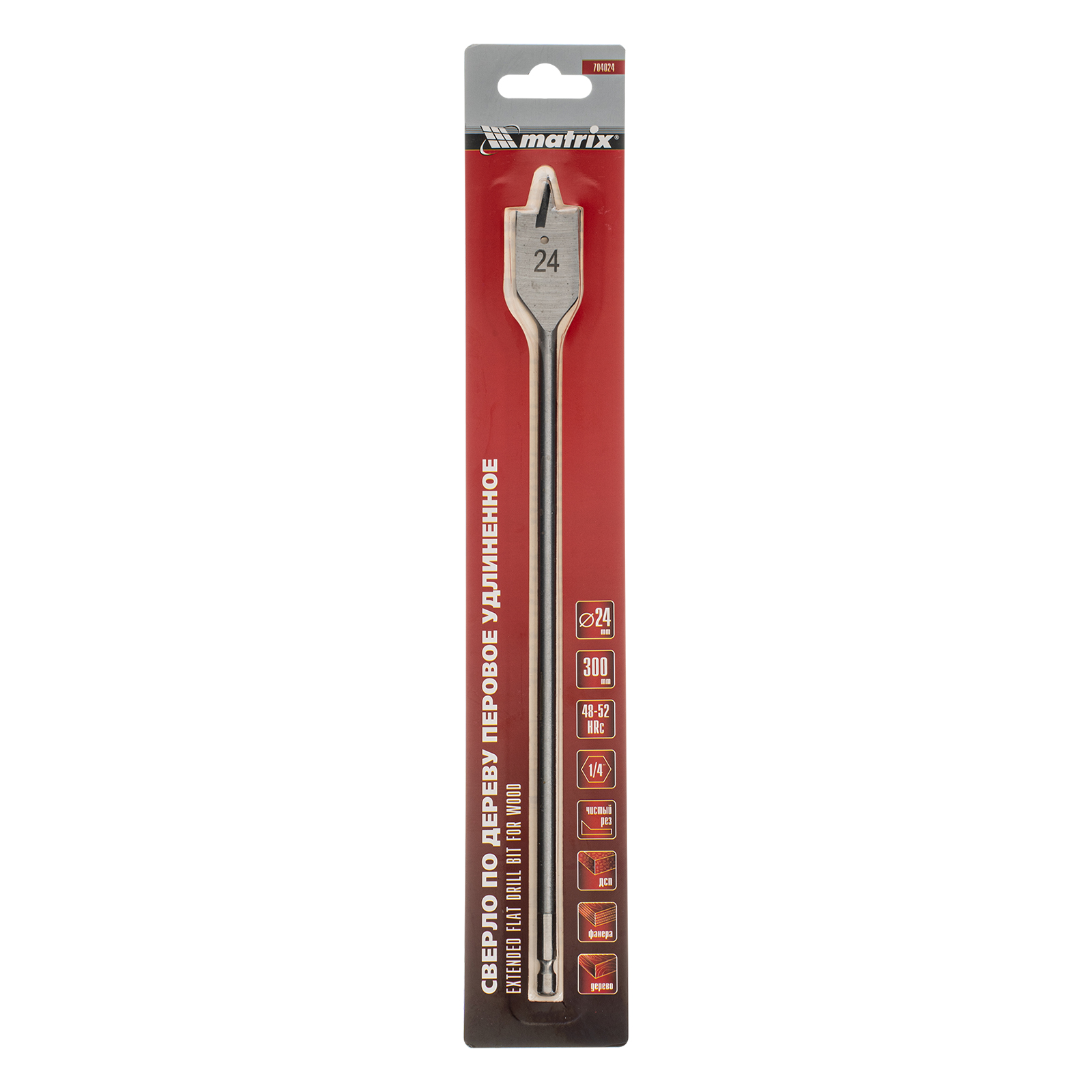 Удлиненное перовое сверло по дереву Matrix 704024 диаметром 24 мм, с 6-гранным хвостовиком, за счет длины 300 мм позволяет получать глубокие отверстия без необходимости использования удлинителя. Эффективно сверлит древесину любой твердости.