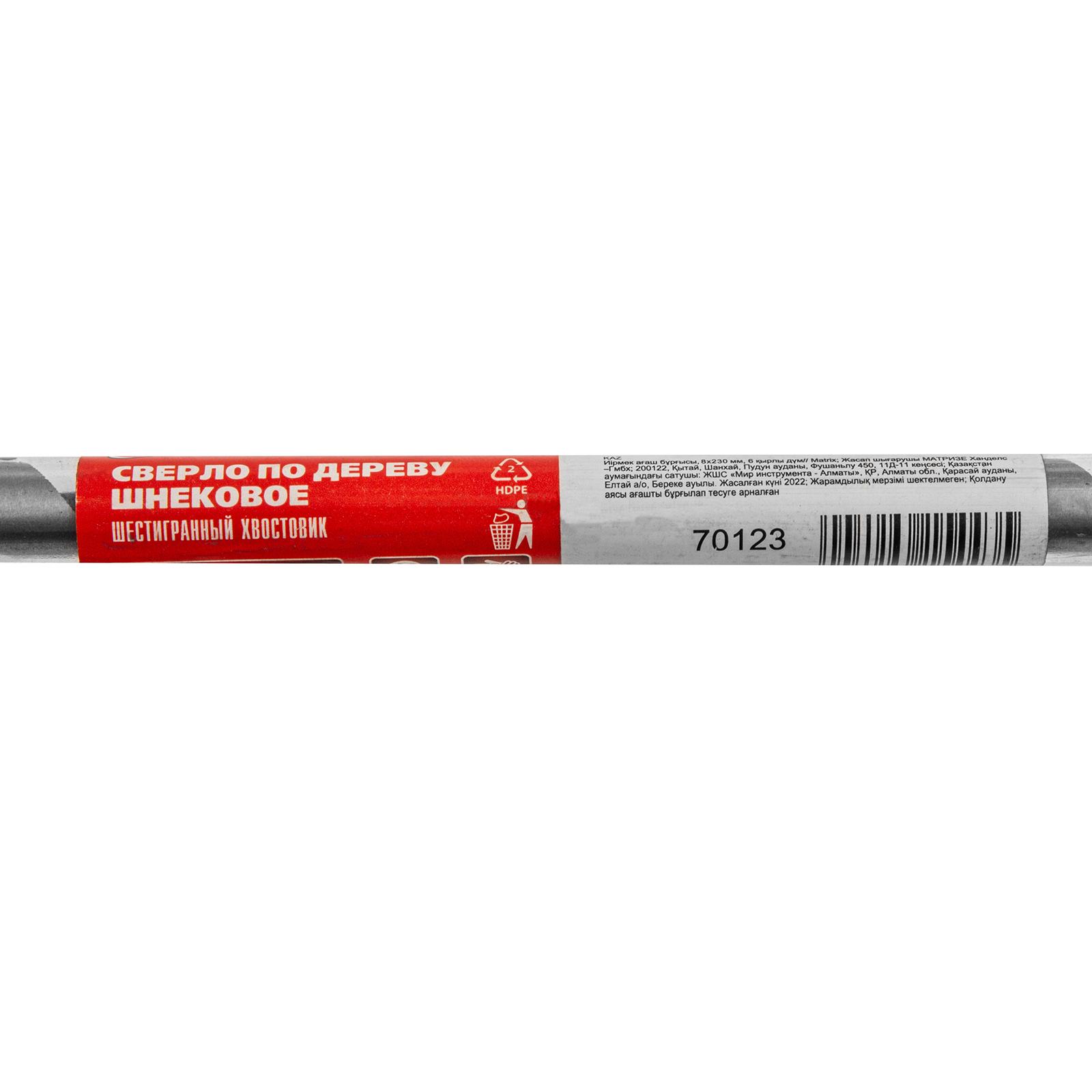 Шнековое сверло по дереву Matrix 70123 размером 10 х 350 мм, с 6-гранным хвостовиком, предназначено для получения глубоких отверстий. Подходит для работы как с мягкими, так и с твердыми породами древесины. Конструкция сверла рассчитана на интенсивное использование с высокими нагрузками в ходе строительных, ремонтных и отделочных работ.