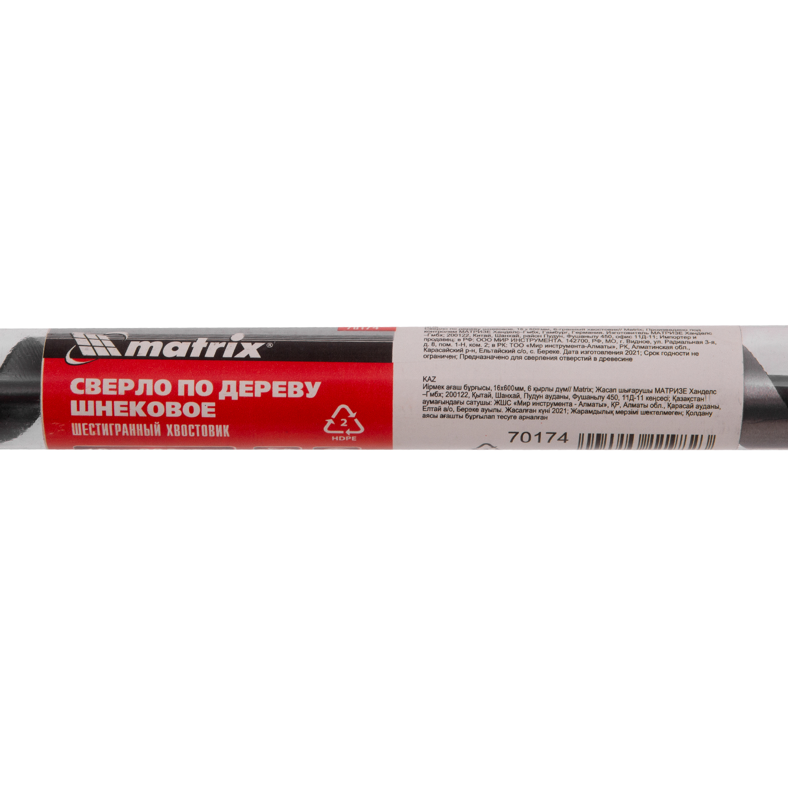 Шнековое сверло по дереву Matrix 70174 размером 16 х 600 мм, с 6-гранным хвостовиком, предназначено для получения глубоких отверстий. Подходит для работы как с мягкими, так и с твердыми породами древесины. Конструкция сверла рассчитана на интенсивное использование с высокими нагрузками в ходе строительных, ремонтных и отделочных работ.
