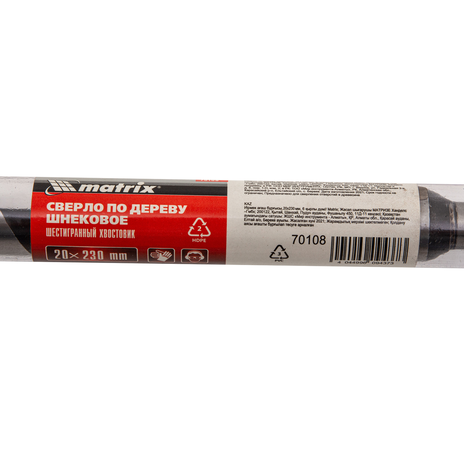 Шнековое сверло по дереву Matrix 70108 размером 20 х 230 мм, с 6-гранным хвостовиком, предназначено для получения глубоких отверстий. Подходит для работы как с мягкими, так и с твердыми породами древесины. Конструкция сверла рассчитана на интенсивное использование с высокими нагрузками в ходе строительных, ремонтных и отделочных работ.