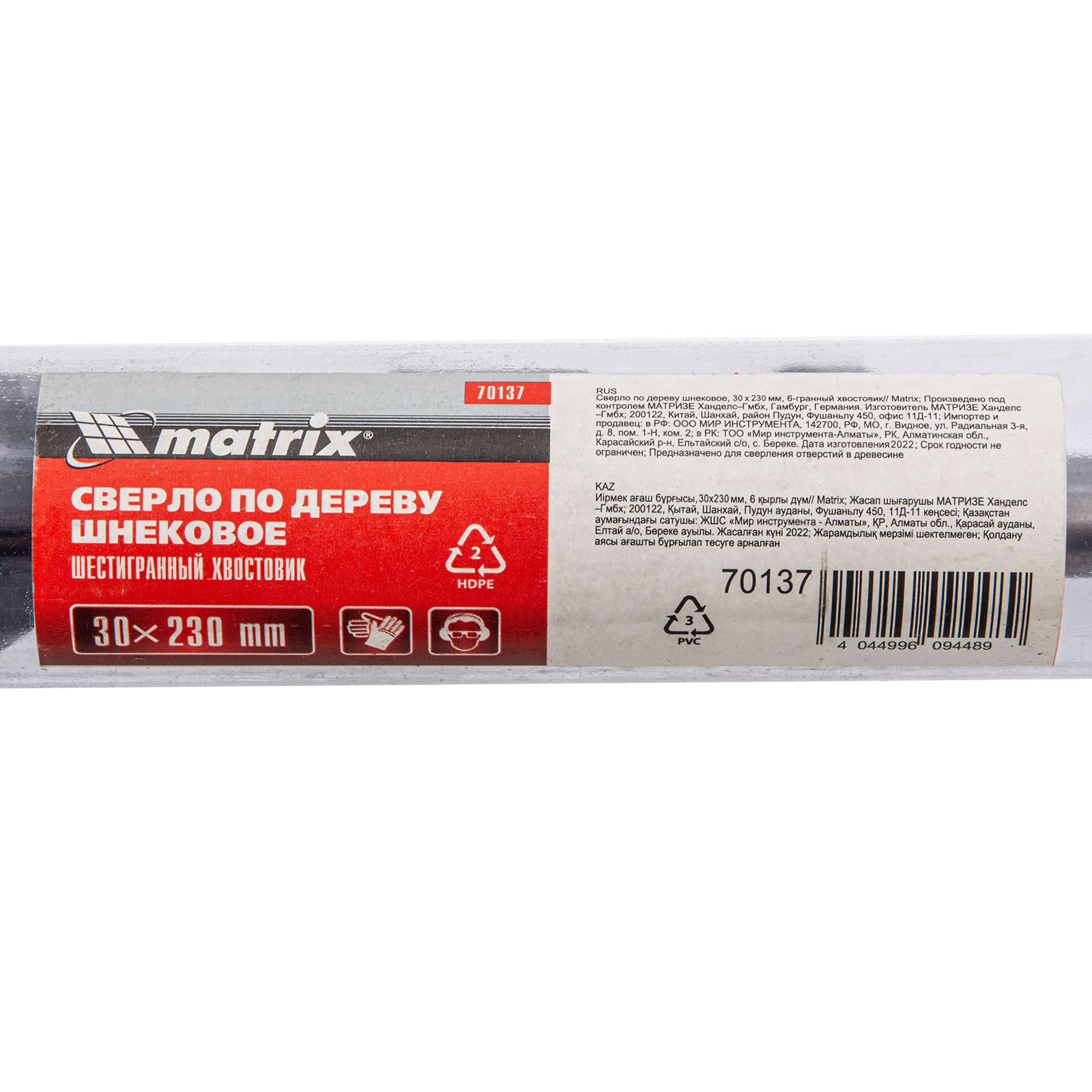 Шнековое сверло по дереву Matrix 70137 размером 30 х 230 мм, с 6-гранным хвостовиком, предназначено для получения глубоких отверстий. Подходит для работы как с мягкими, так и с твердыми породами древесины. Конструкция сверла рассчитана на интенсивное использование с высокими нагрузками в ходе строительных, ремонтных и отделочных работ.
