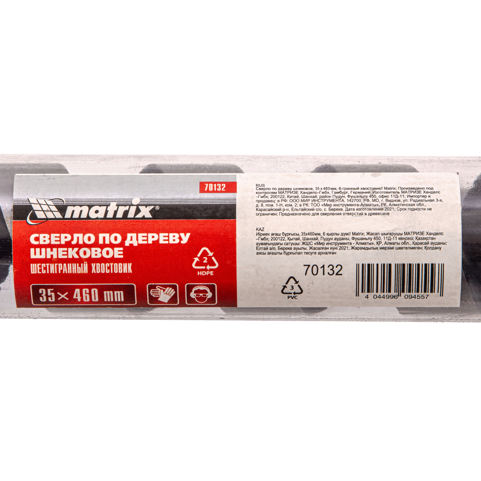 Шнековое сверло по дереву Matrix 70132 размером 35 х 460 мм, с 6-гранным хвостовиком, предназначено для получения глубоких отверстий. Подходит для работы как с мягкими, так и с твердыми породами древесины. Конструкция сверла рассчитана на интенсивное использование с высокими нагрузками в ходе строительных, ремонтных и отделочных работ.