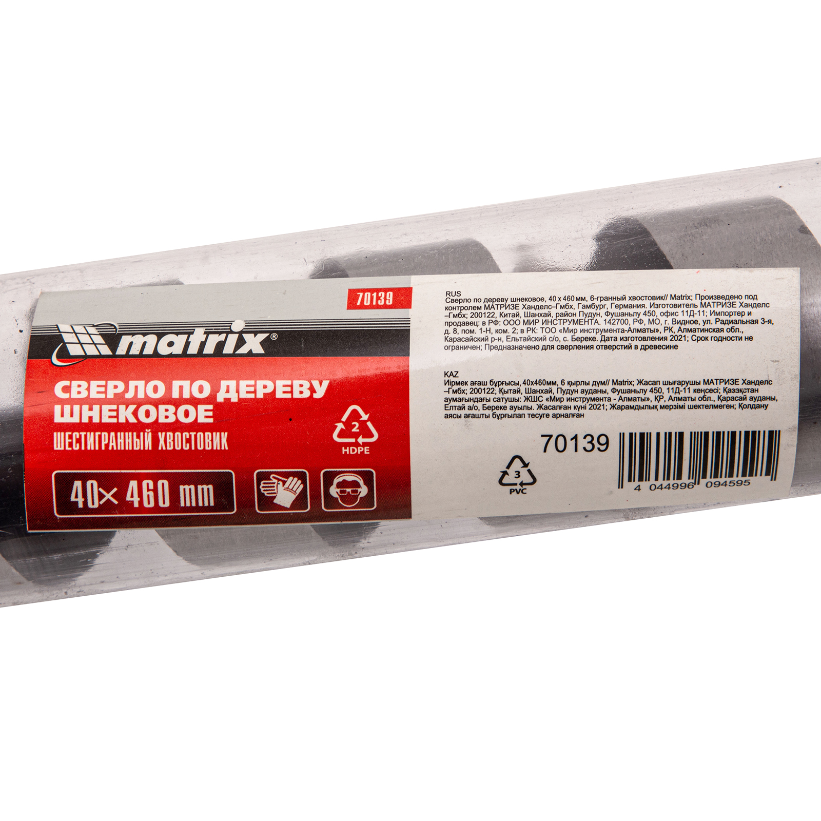 Шнековое сверло по дереву Matrix 70139 размером 40 х 460 мм, с 6-гранным хвостовиком, предназначено для получения глубоких отверстий. Подходит для работы как с мягкими, так и с твердыми породами древесины. Конструкция сверла рассчитана на интенсивное использование с высокими нагрузками в ходе строительных, ремонтных и отделочных работ.