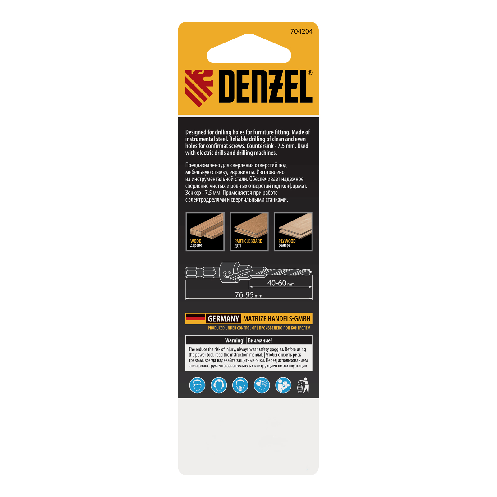 Сверло-зенкер Denzel 704204 диаметром 4 мм предназначено для получения точных и ровных отверстий под мебельную стяжку (евровинты, конфирмат) без дополнительного зенкования. Устанавливается в патрон дрели или сверлильного станка, подходит для работы с изделиями из древесины, ДСП, ЛДСП, фанеры. Оснастка пригодится во время сборки мебели и проведения ремонтных работ.