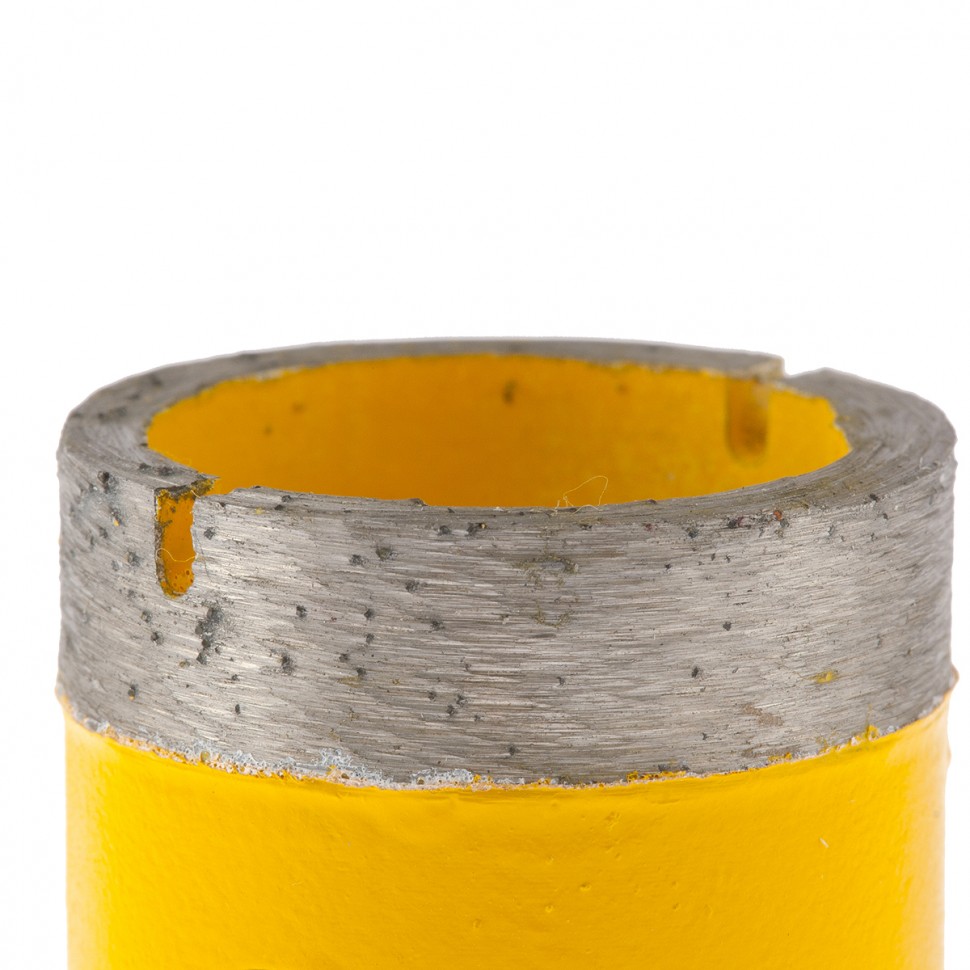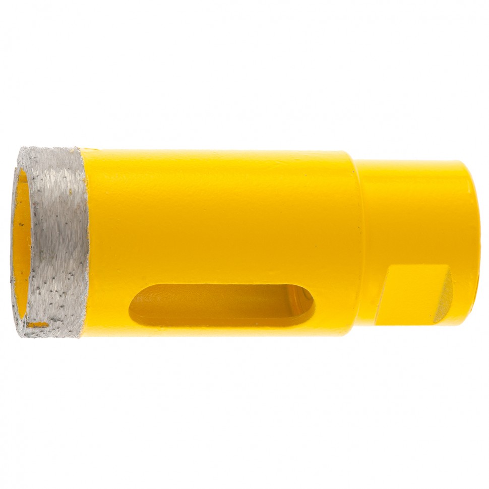 Алмазное сверло Denzel 72684 диаметром 32 мм, с резьбой М14, предназначено для «мокрого» сверления по керамограниту, мрамору, стеклу и керамической плитке. Позволяет получать ровные отверстия без сколов, используется для проведения ремонтных и отделочных работ. Сверло (коронку) устанавливают на вал углошлифовальной машины, благодаря чему скорость сверления увеличивается в несколько раз по сравнению с дрелью или шуруповертом. Применение водяного охлаждения повышает срок службы оснастки. Чтобы точно позиционировать сверло при сверлении дрелью, рекомендуется использовать кондуктор (арт. 72830).