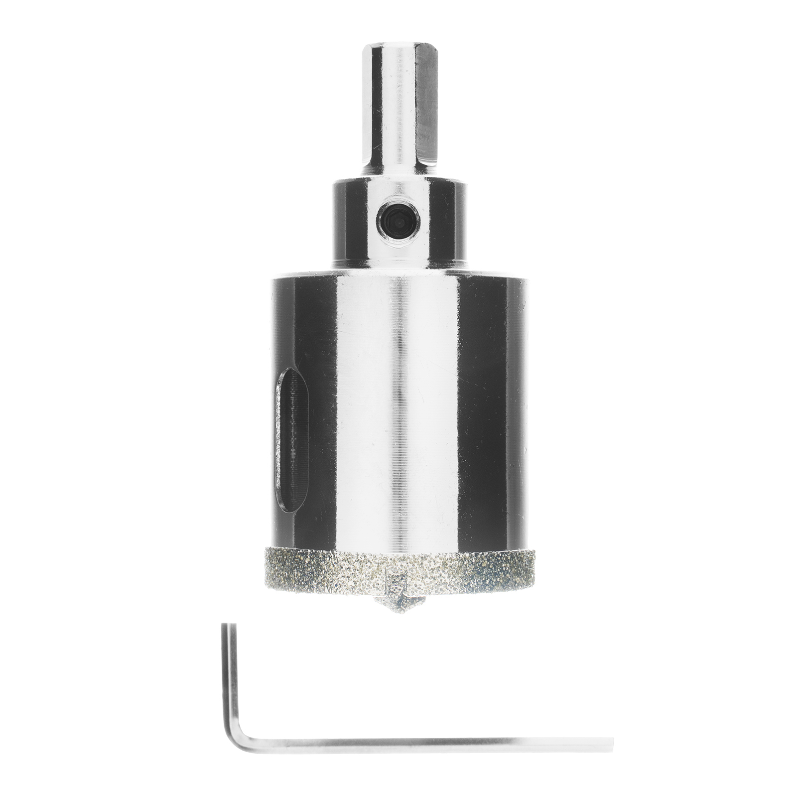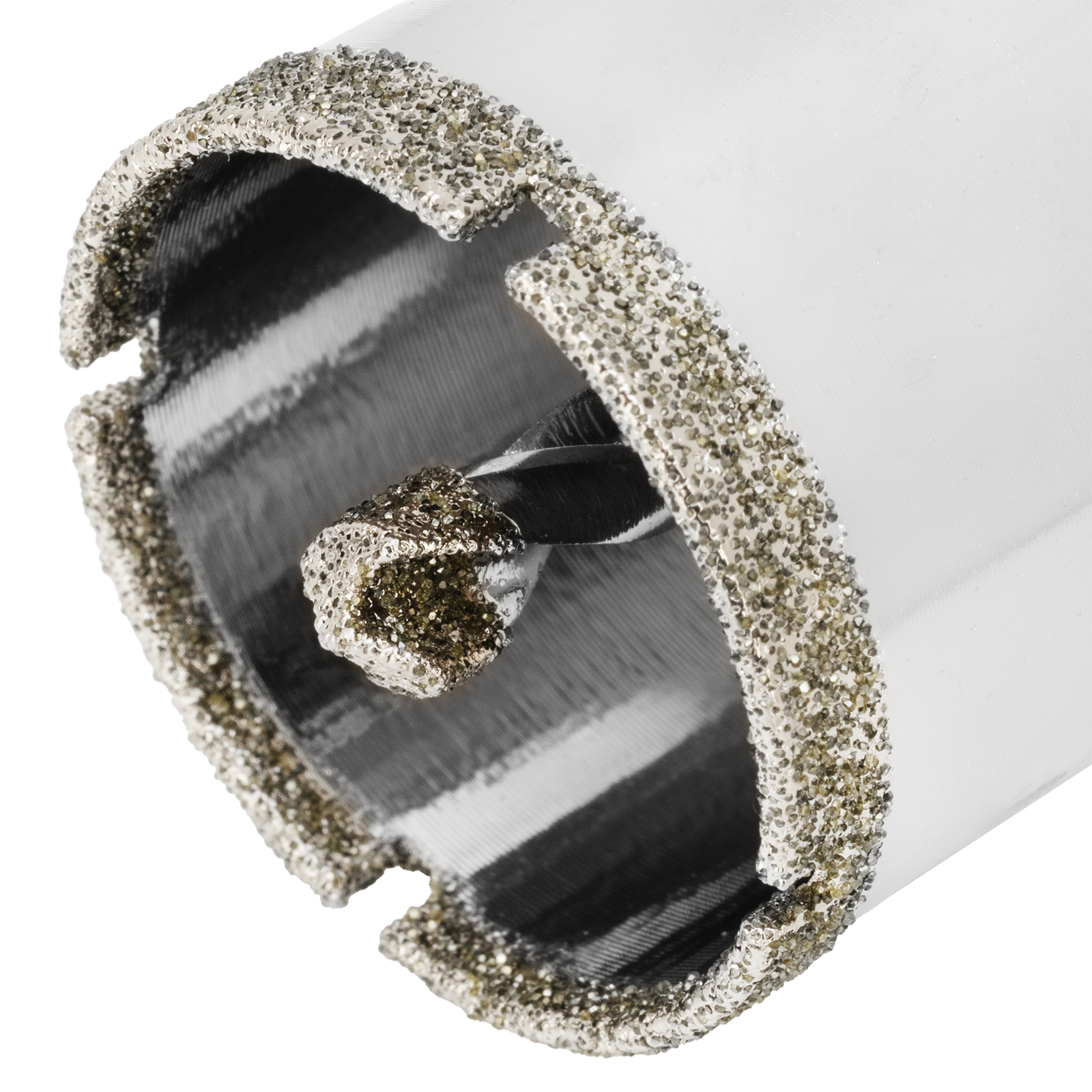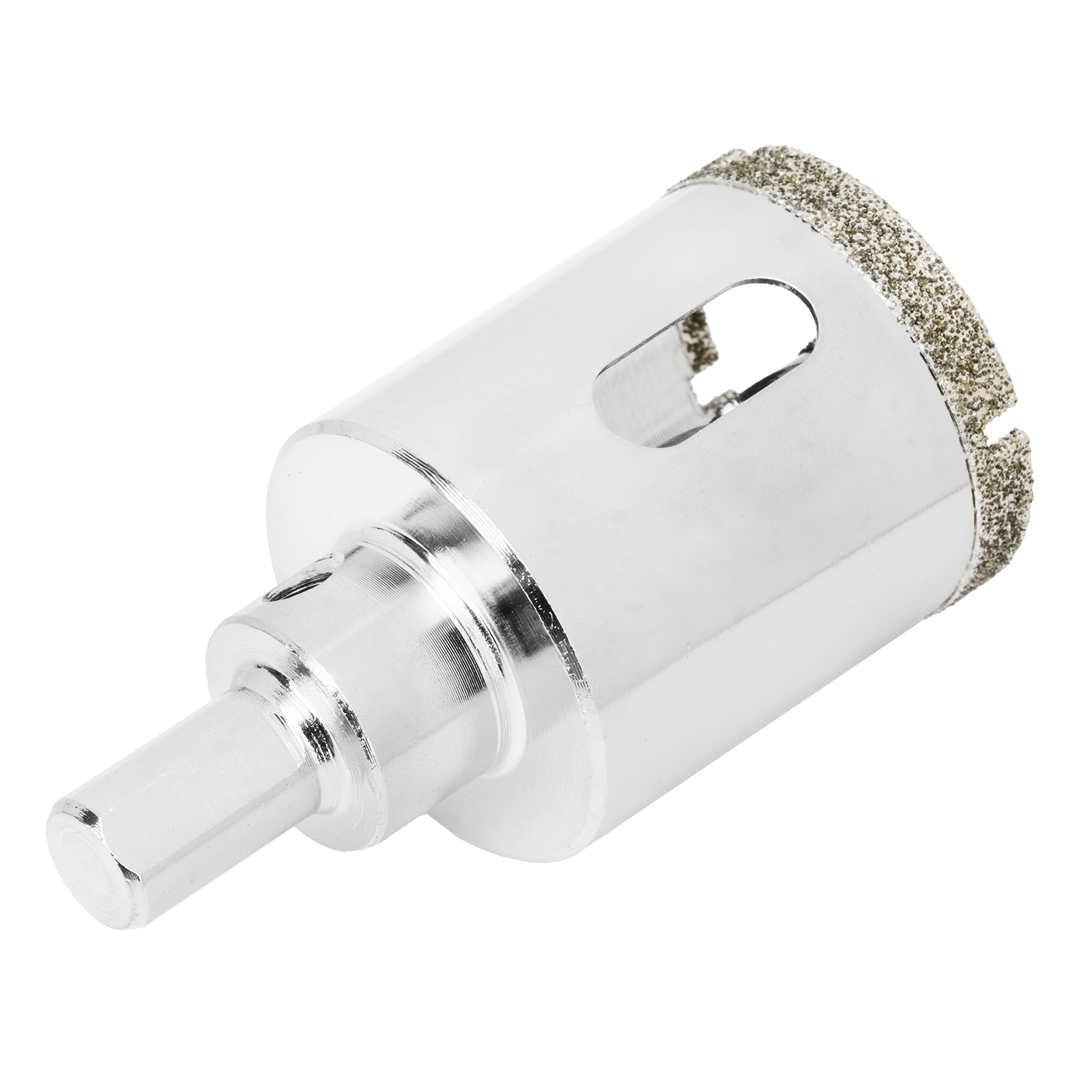 Универсальное алмазное сверло по керамограниту Matrix 726353 размером 35 х 67 мм, с 3-гранным хвостовиком, применяется для получения отверстий в стекле, плитке, кафеле. За счет высокой концентрации алмазов в режущем слое оно легко справляется со сверлением керамогранита. Сверло рассчитано на профессиональное использование с дрелями и шуруповертами. Водяное охлаждение в процессе работы значительно повышает срок службы оснастки.